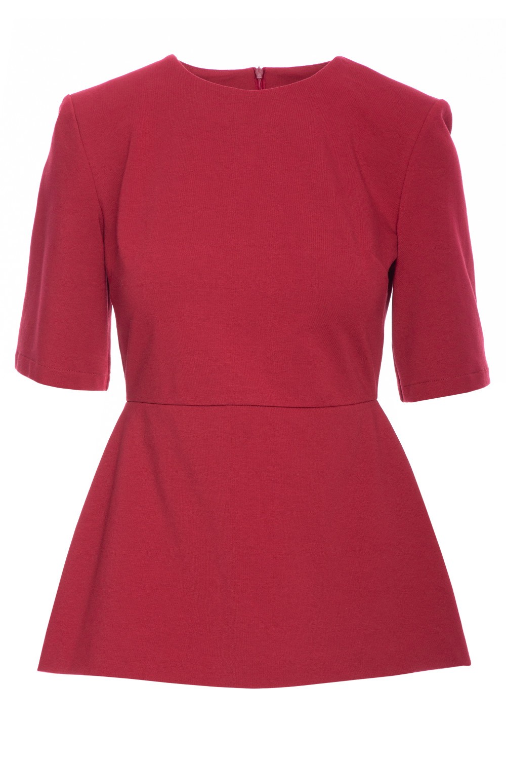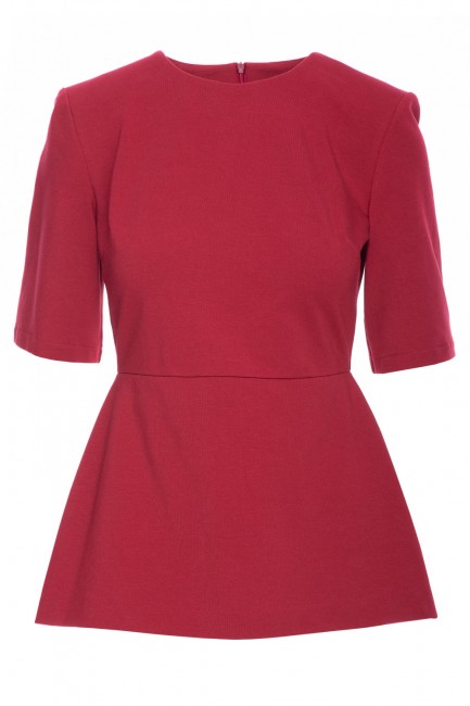 Bluzka dzianinowa z baskinką i krótkim rękawem - bordowa
