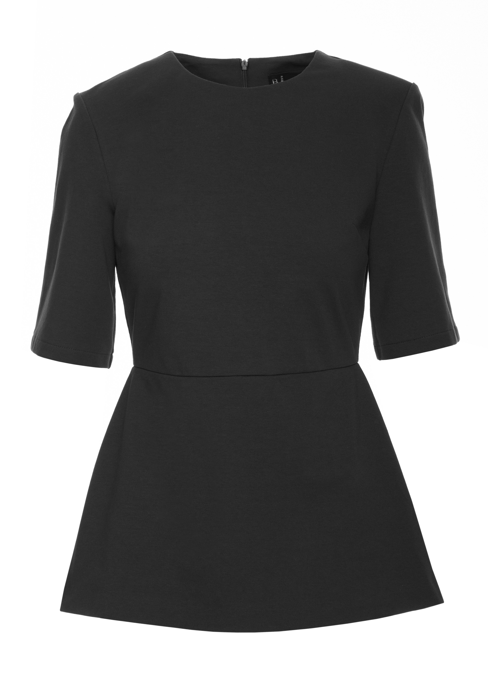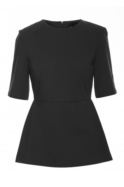 Bluzka dzianinowa z baskinką i krótkim rękawem - czarna