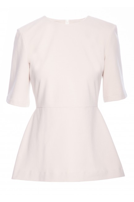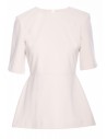 Bluzka dzianinowa z baskinką i krótkim rękawem - piaskowa