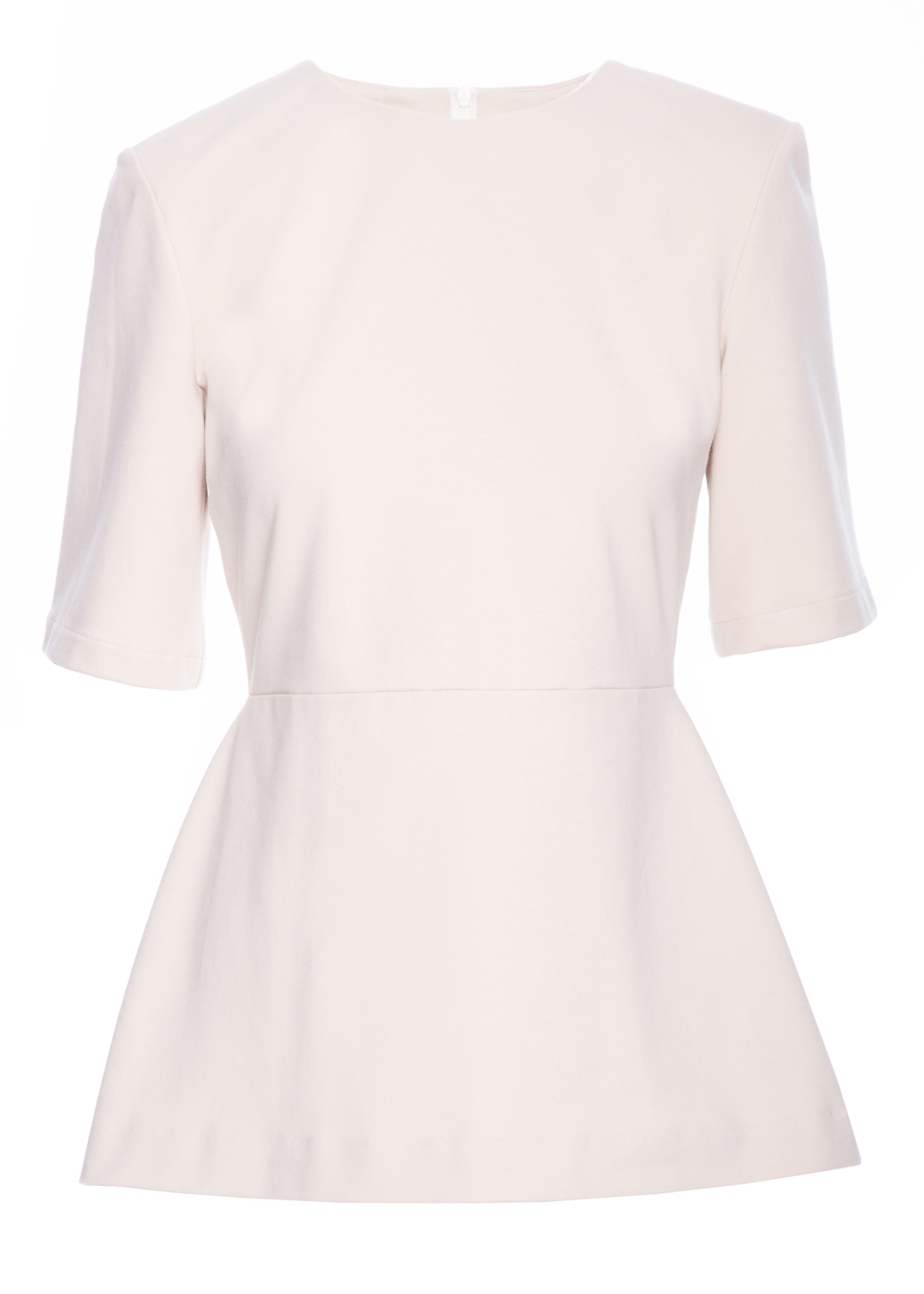 Bluzka dzianinowa z baskinką wykonana z gładkiej dzianiny dresowej o gramaturze 260 g. Klasyczny, lekko taliowany fason z krótkimi rękawami do łokcia i okrągłym dekoltem pod szyją. Dopasowana w górnej części, delikatnie rozszerzana ku dołowi, dzięki czemu tworzy subtelny efekt baskinki. Minimalistyczna i uniwersalna – świetnie sprawdzi się w stylizacjach do biura, jak i w casualowych zestawach z jeansami.