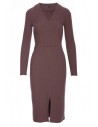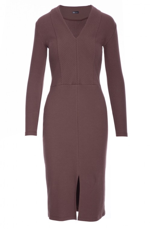 DM1486 Prążkowana sukienka ołówkowa z długimi rękawami - brązowa