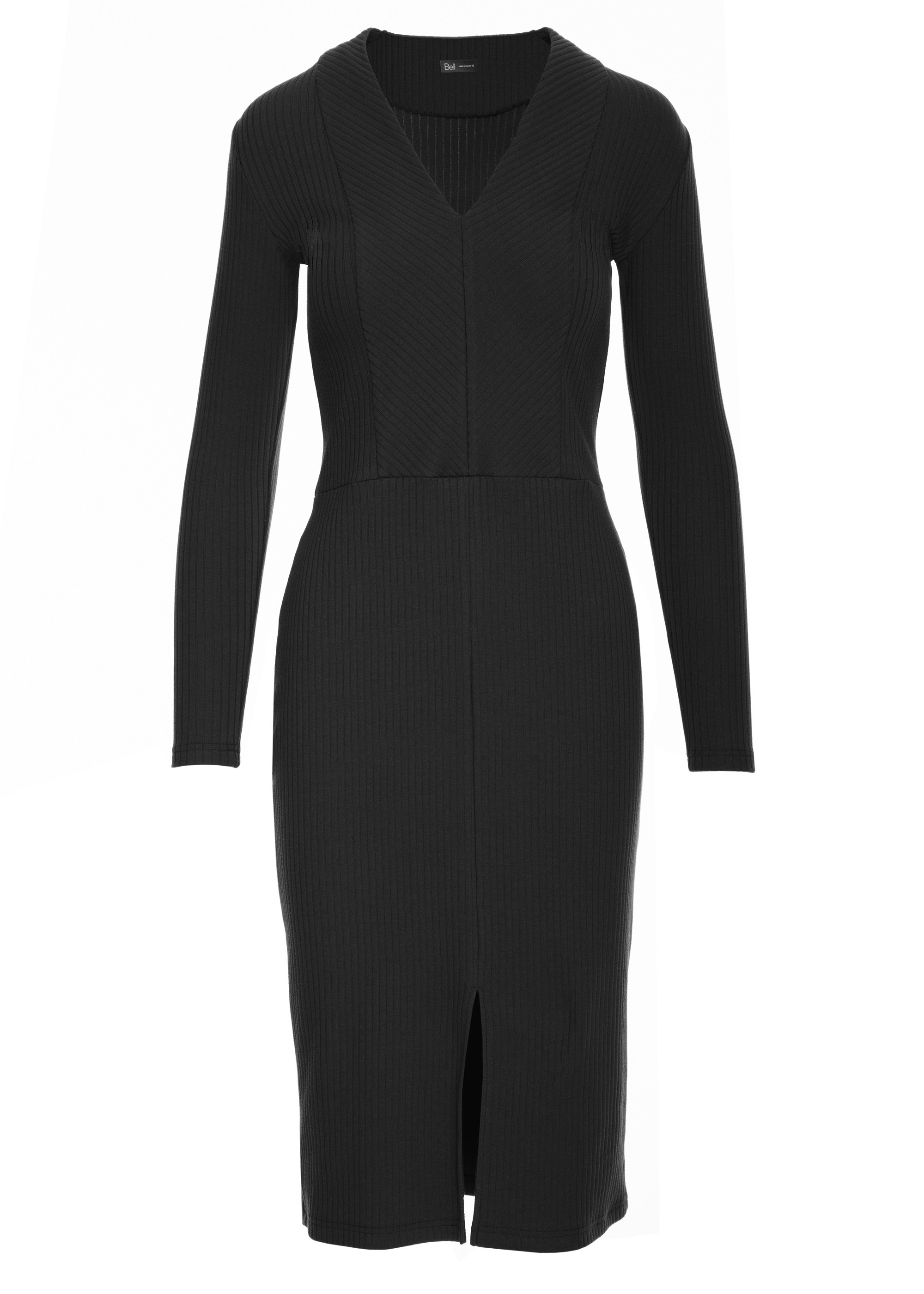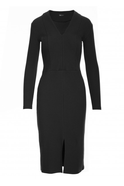 DM1486 Prążkowana sukienka ołówkowa z długimi rękawami - czarna