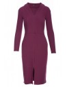 Prążkowana sukienka ołówkowa z długimi rękawami - śliwkowa