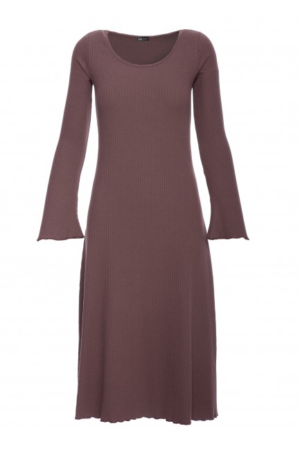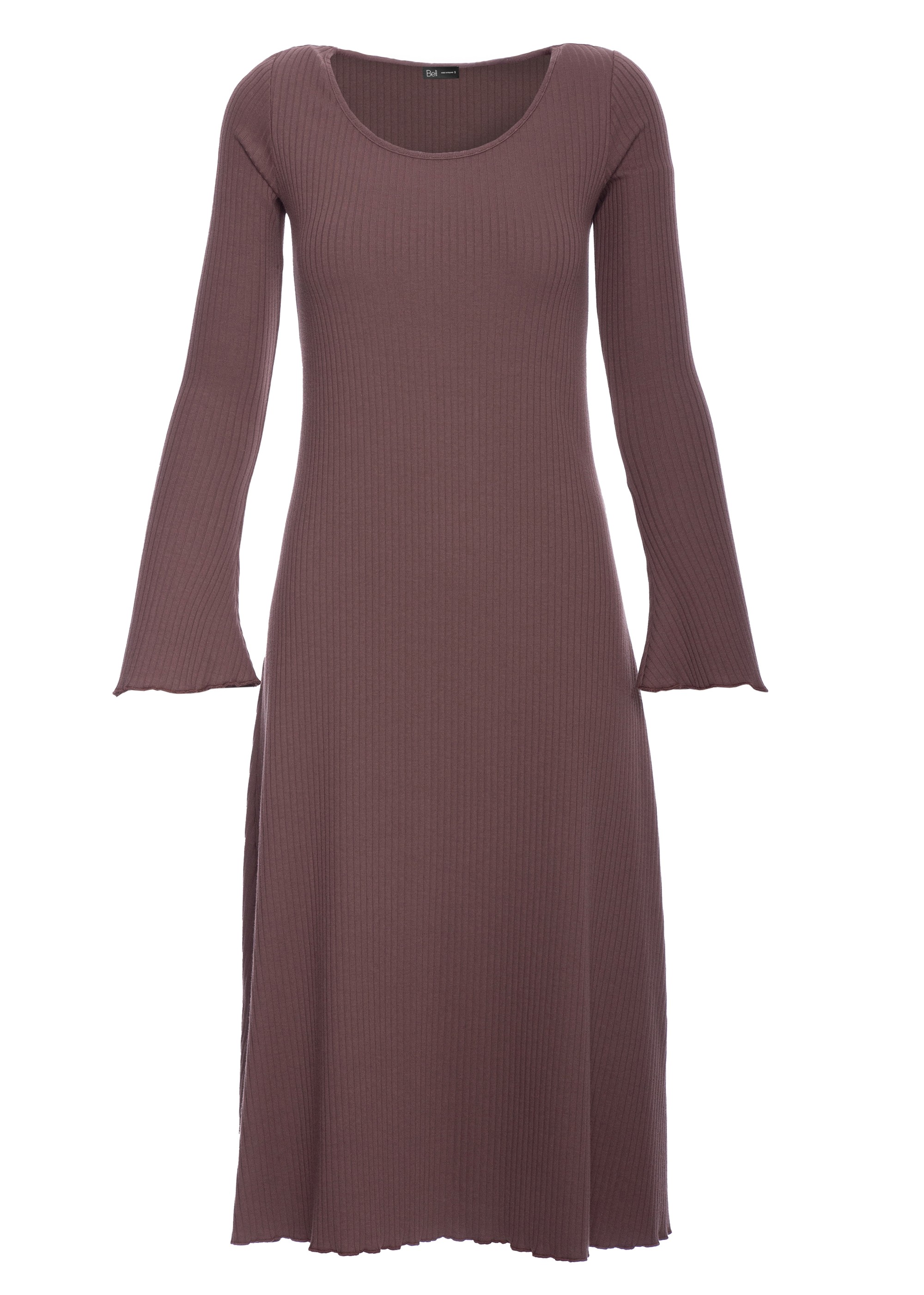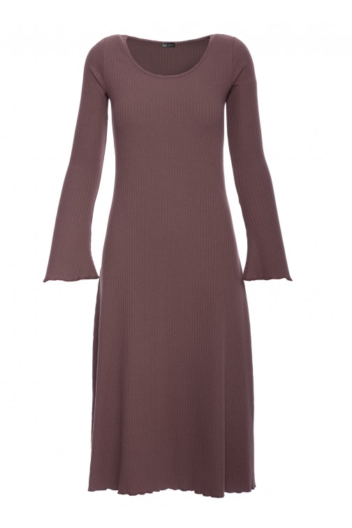 DM1487 Prążkowana sukienka midi z dzianiny - brązowa