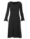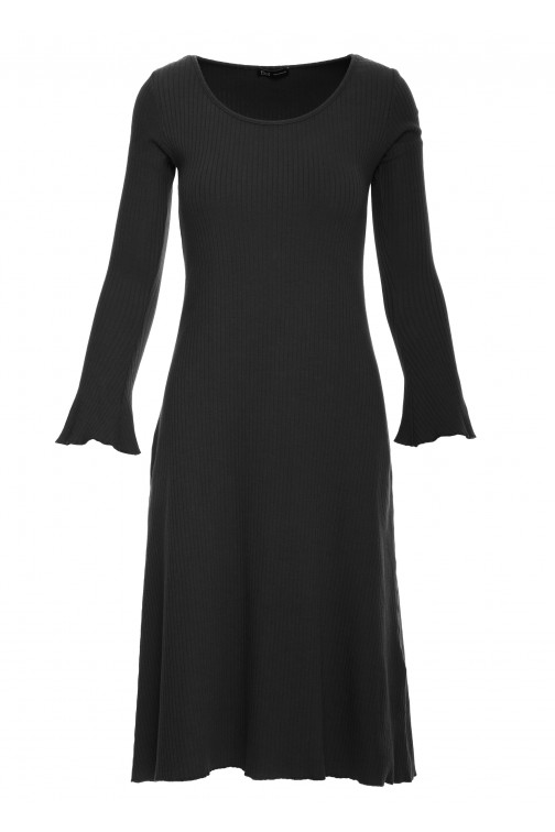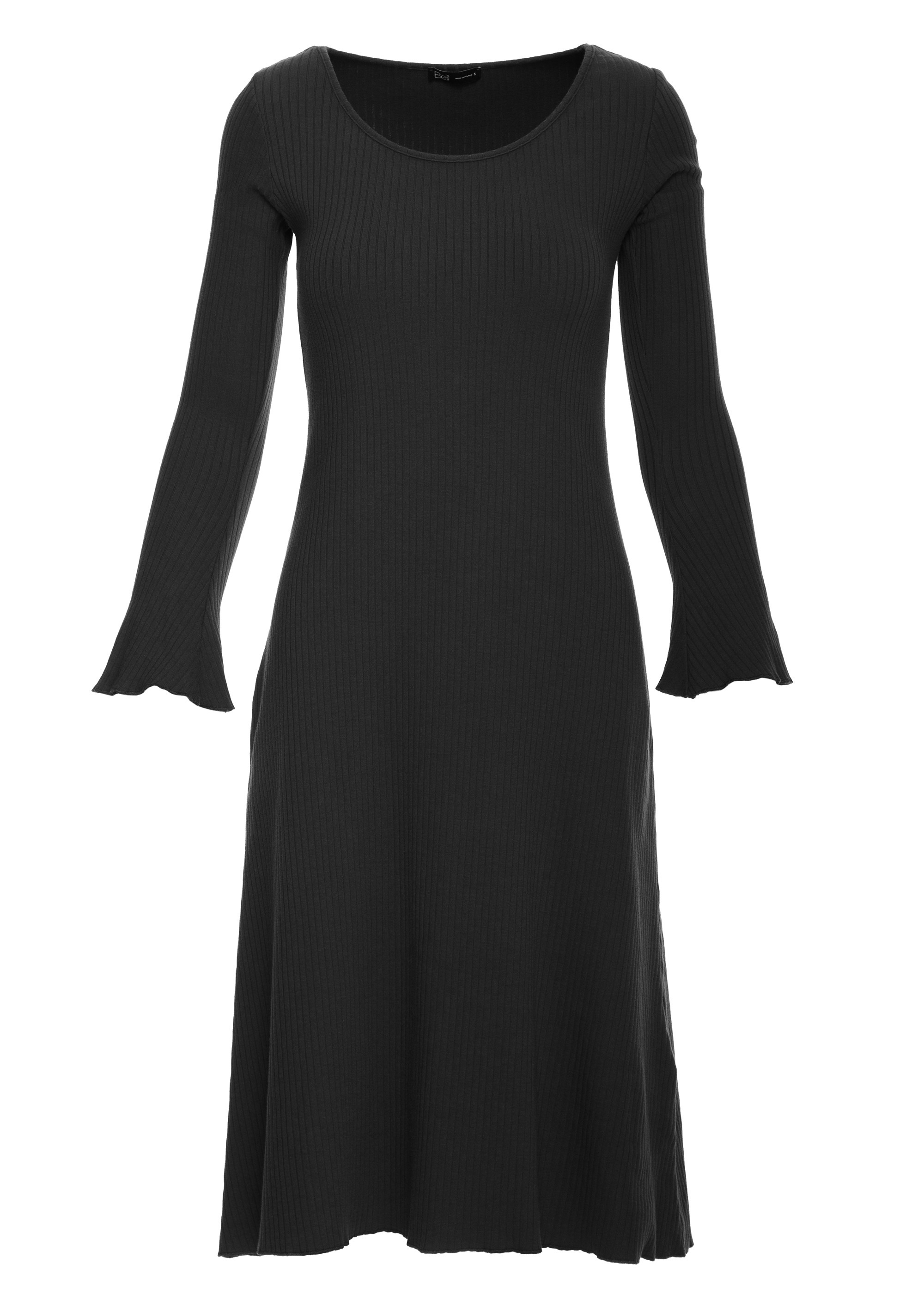 DM1487 Prążkowana sukienka midi z dzianiny - czarna