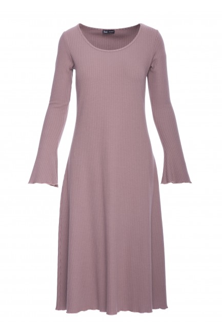 DM1487 Prążkowana sukienka midi z dzianiny - kakaowa