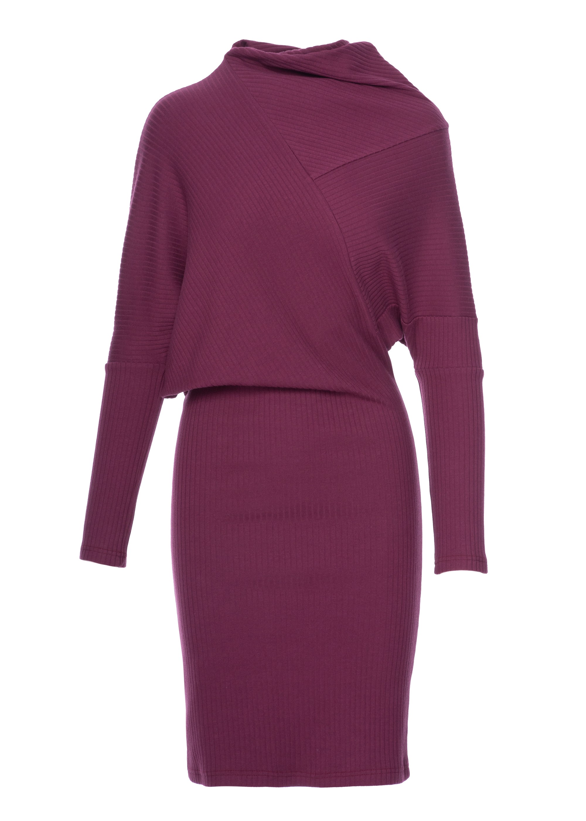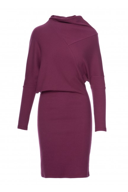 DM1488 Prążkowana sukienka mini z dopasowanym dołem - śliwkowa