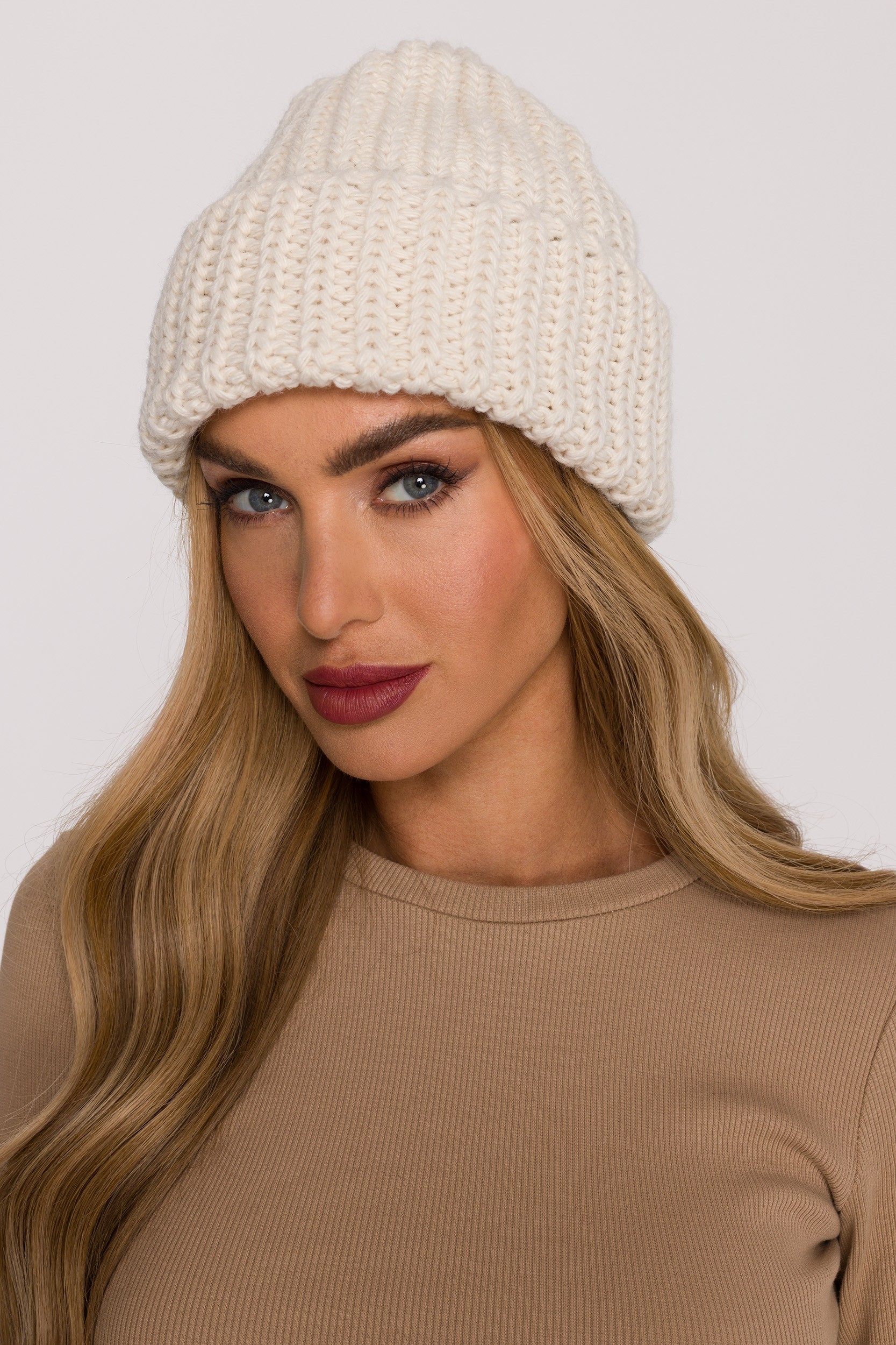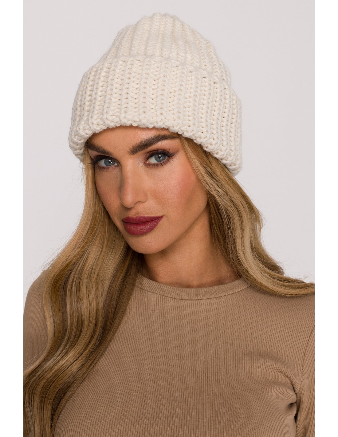 DM1490 Czapka z miękkiej przędzy o grubym splocie - ecru
