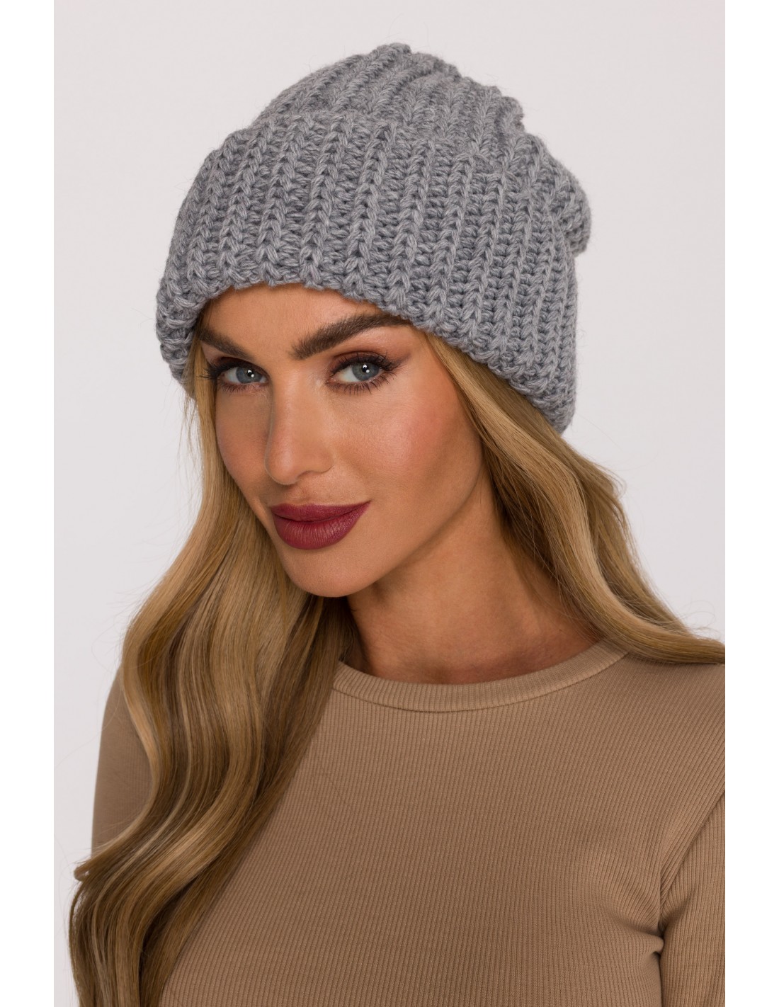 DM1490 Czapka z miękkiej przędzy o grubym splocie - szara