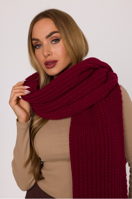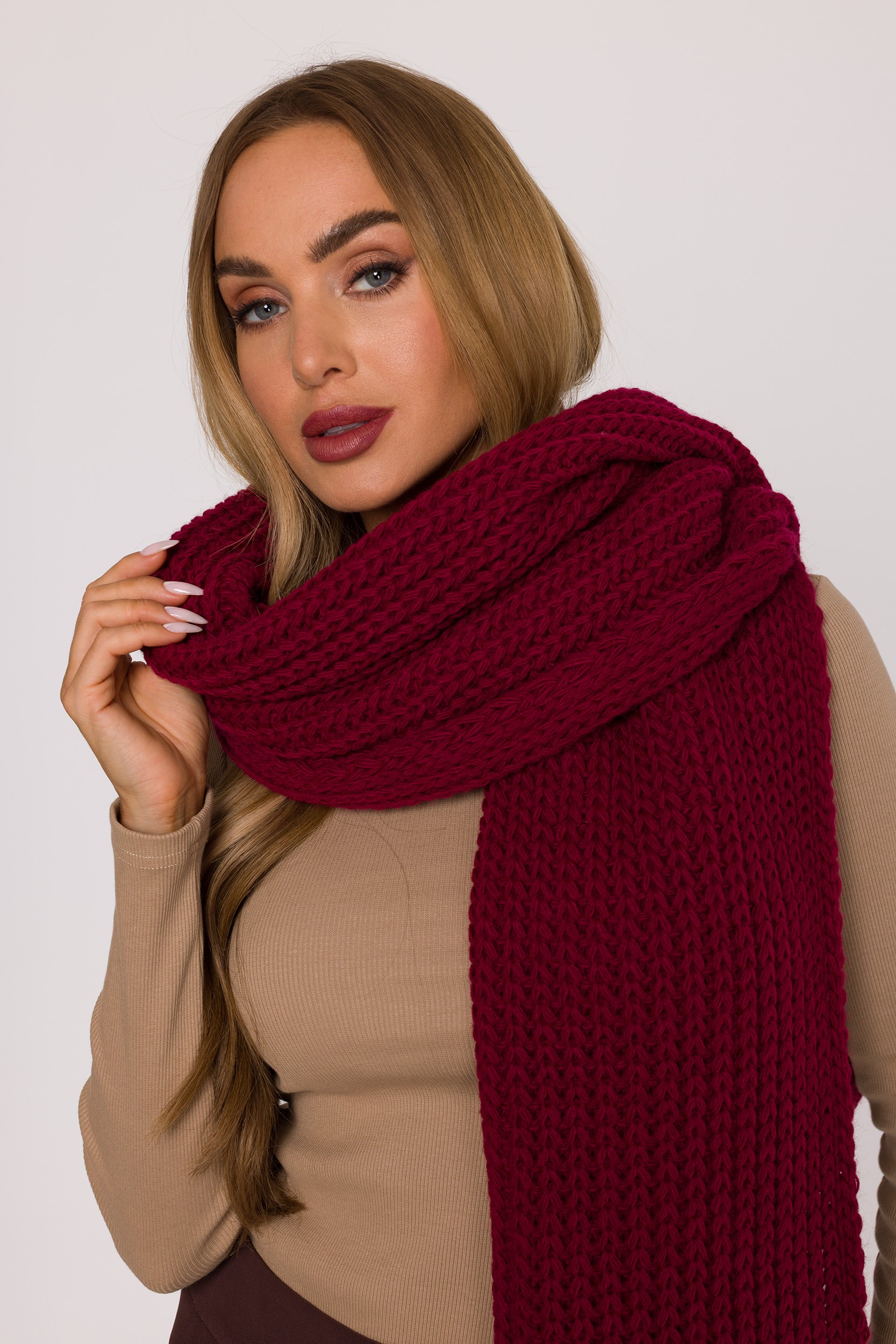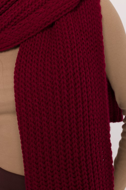 DM1491 Długi szalik z miękkiej przędzy o prążkowanym splocie - bordowy