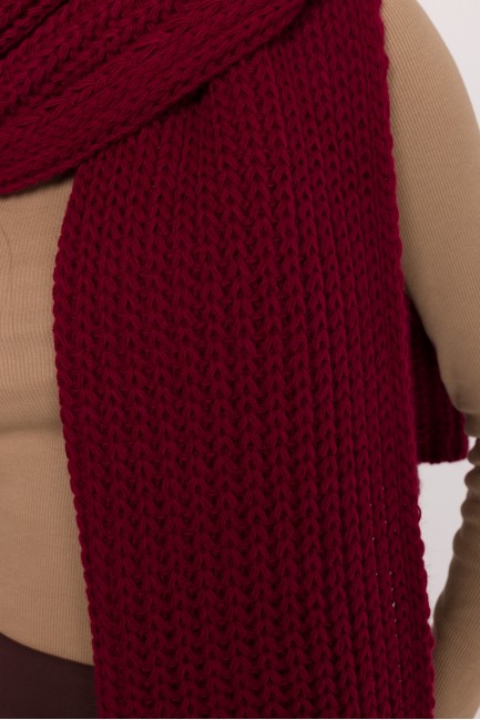 Długi szalik z miękkiej przędzy o prążkowanym splocie - bordowy