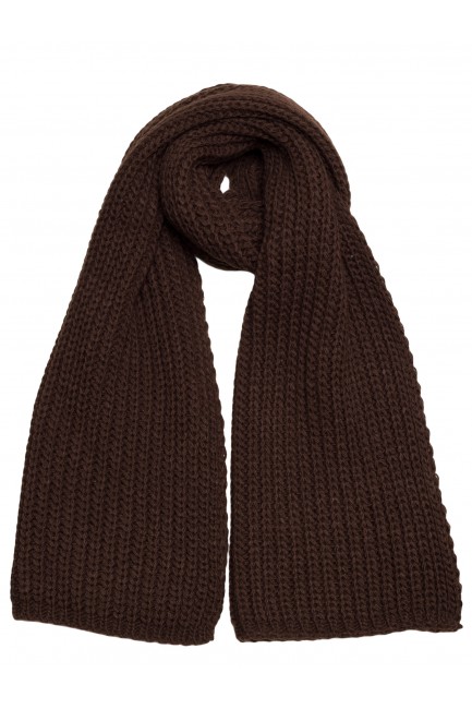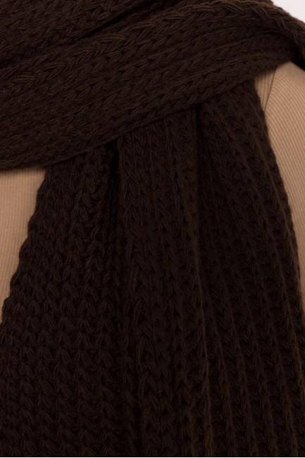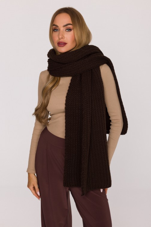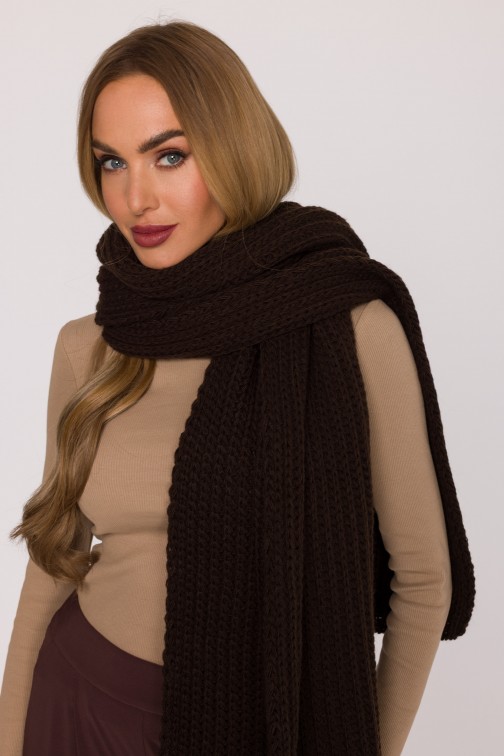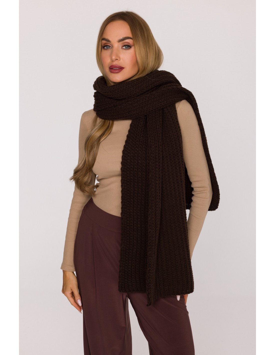 DM1491 Długi szalik z miękkiej przędzy o prążkowanym splocie - brązowy