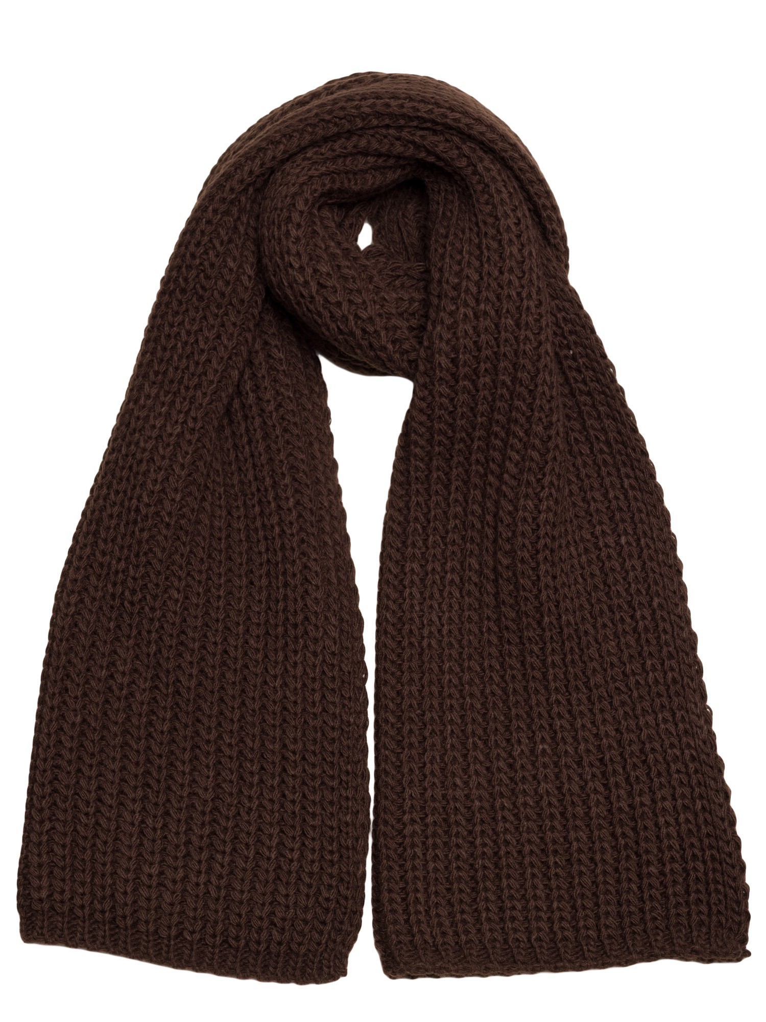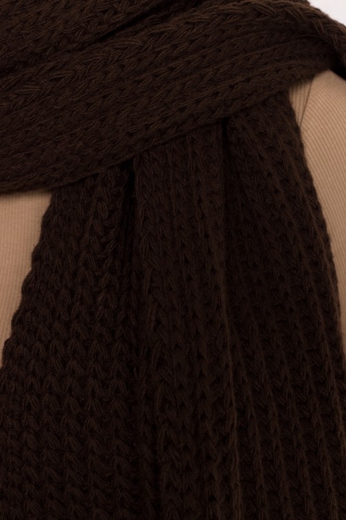 Długi szalik z miękkiej przędzy o prążkowanym splocie - brązowy