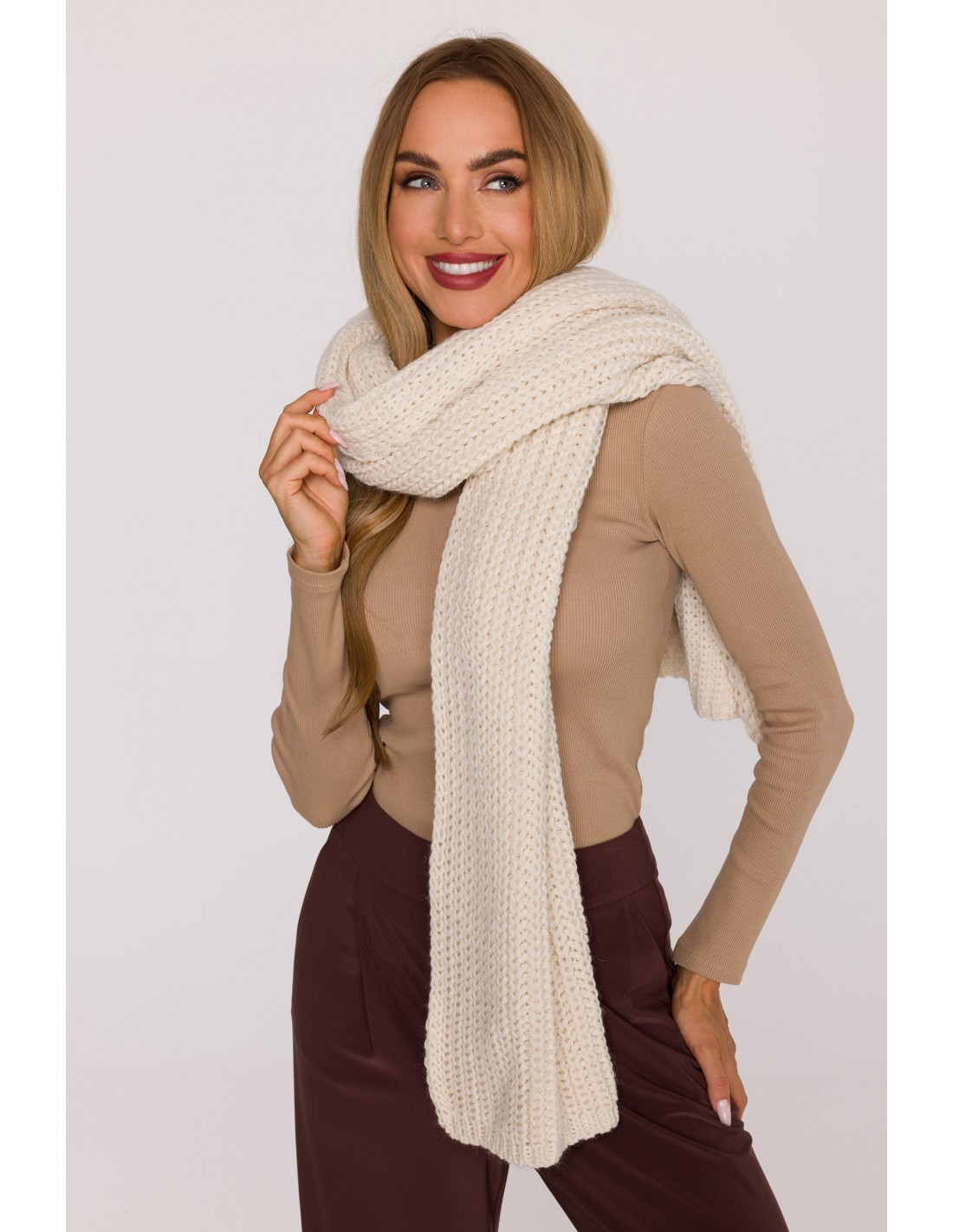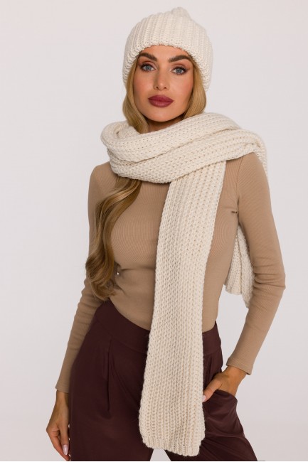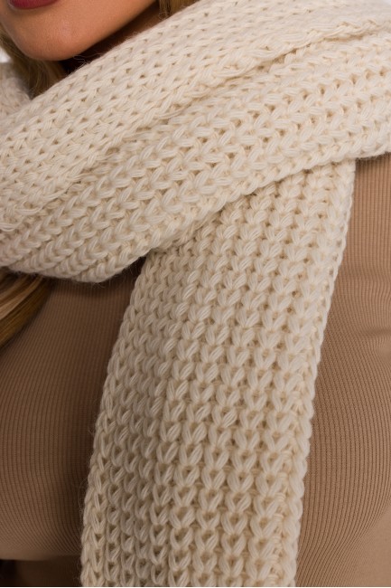 DM1491 Długi szalik z miękkiej przędzy o prążkowanym splocie - ecru
