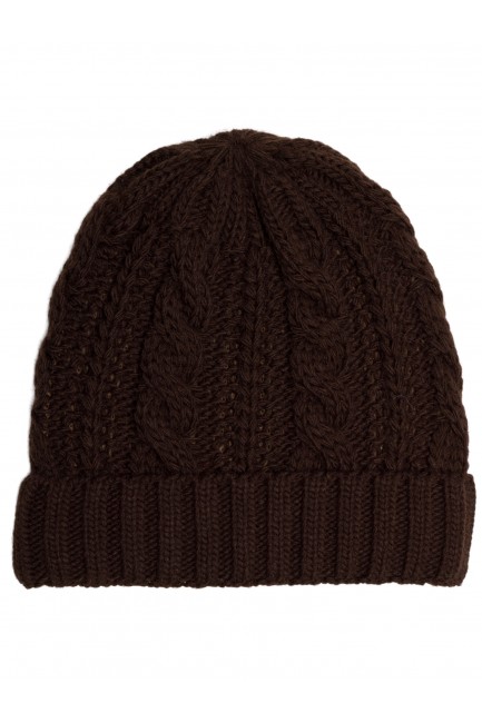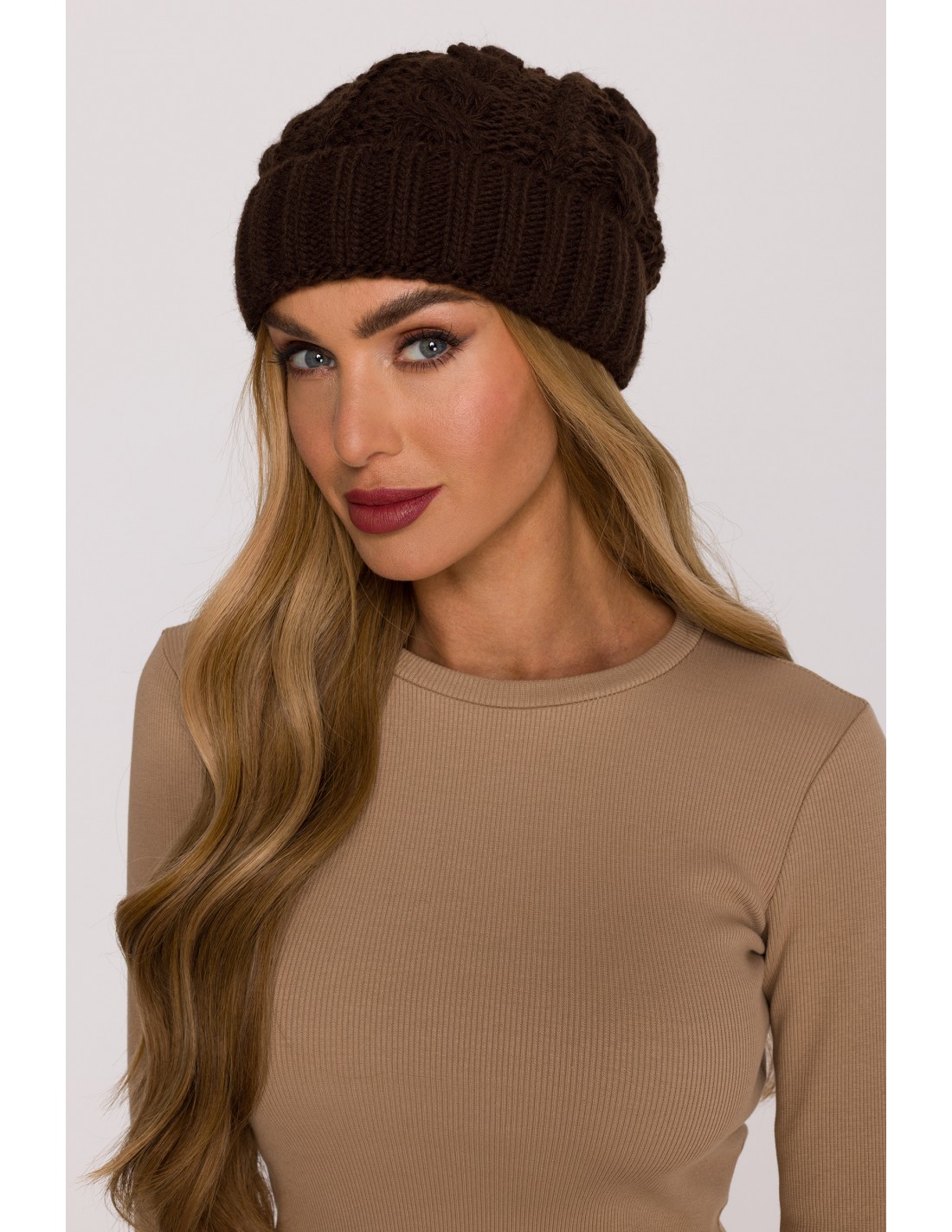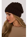 DM1492 Czapka z przędzy o warkoczowym splocie - brązowa