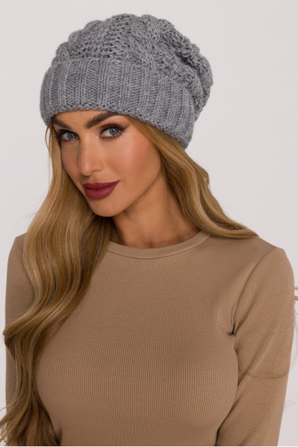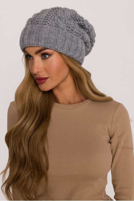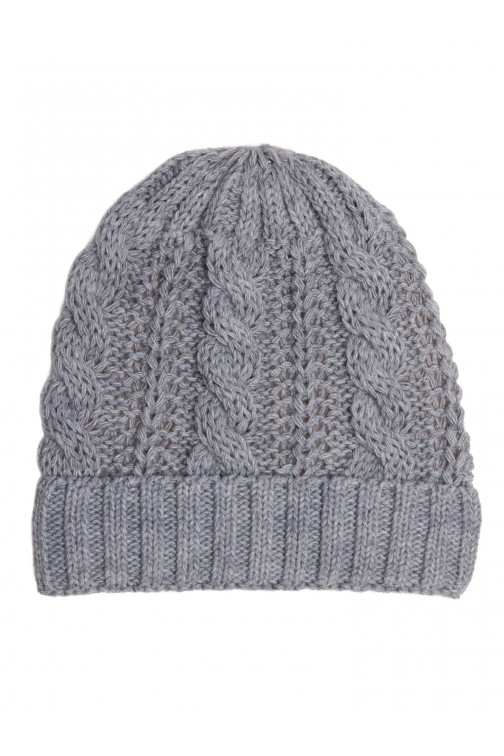 DM1492 Czapka z przędzy o warkoczowym splocie - szara