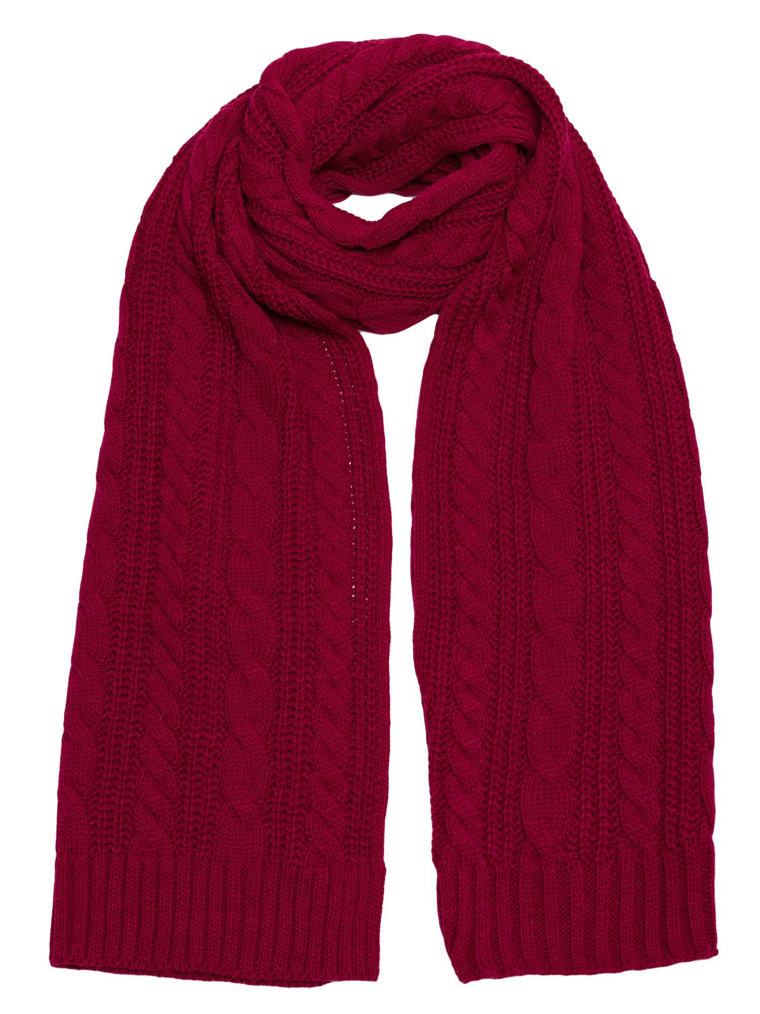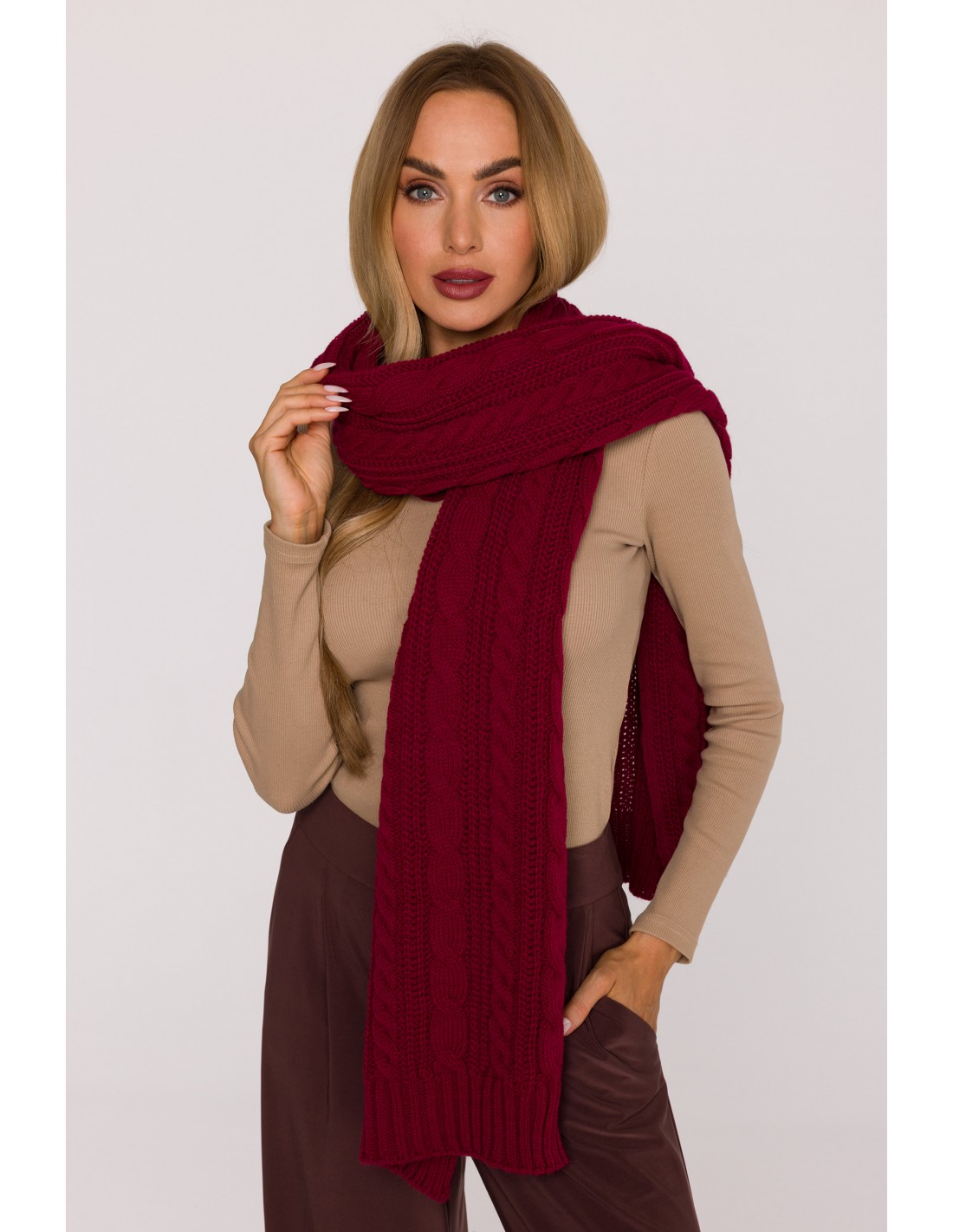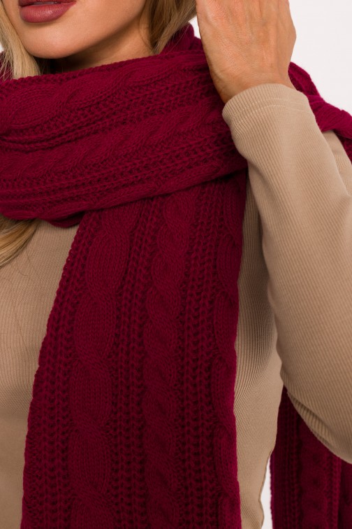 Długi szalik o grubym splocie warkoczowym - bordowy