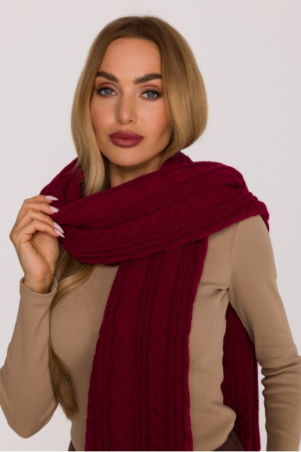 DM1493 Długi szalik o grubym splocie warkoczowym - bordowy