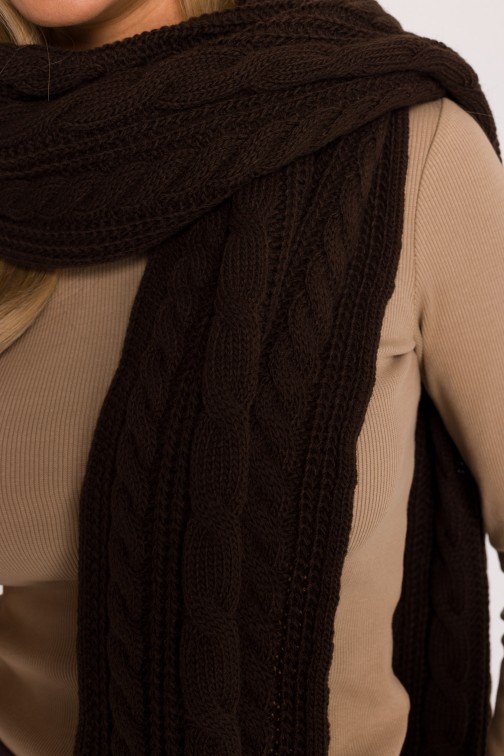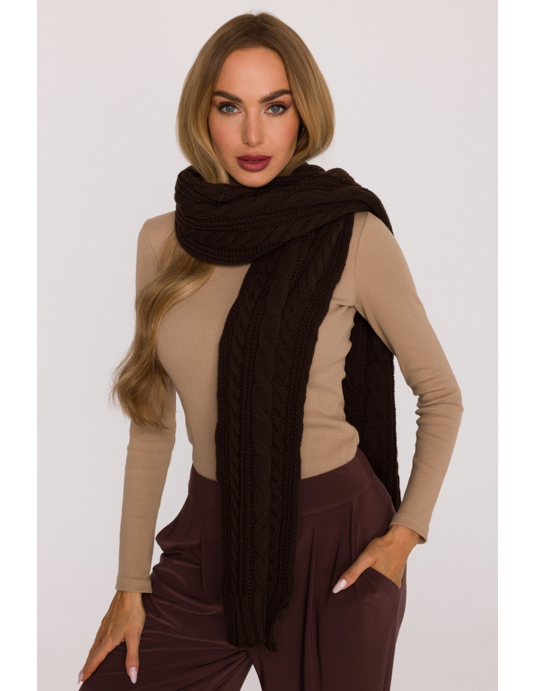 DM1493 Długi szalik o grubym splocie warkoczowym - brązowy