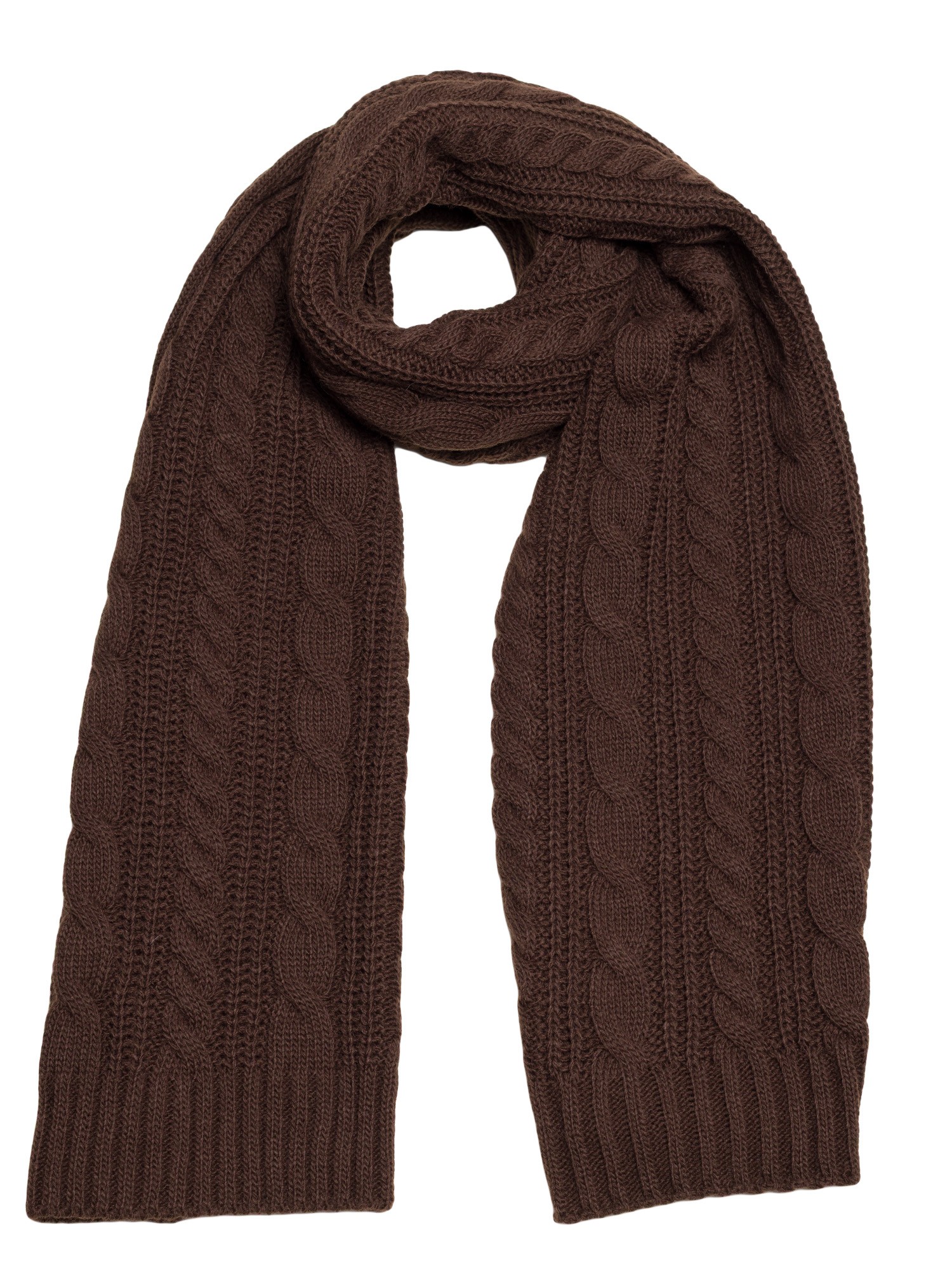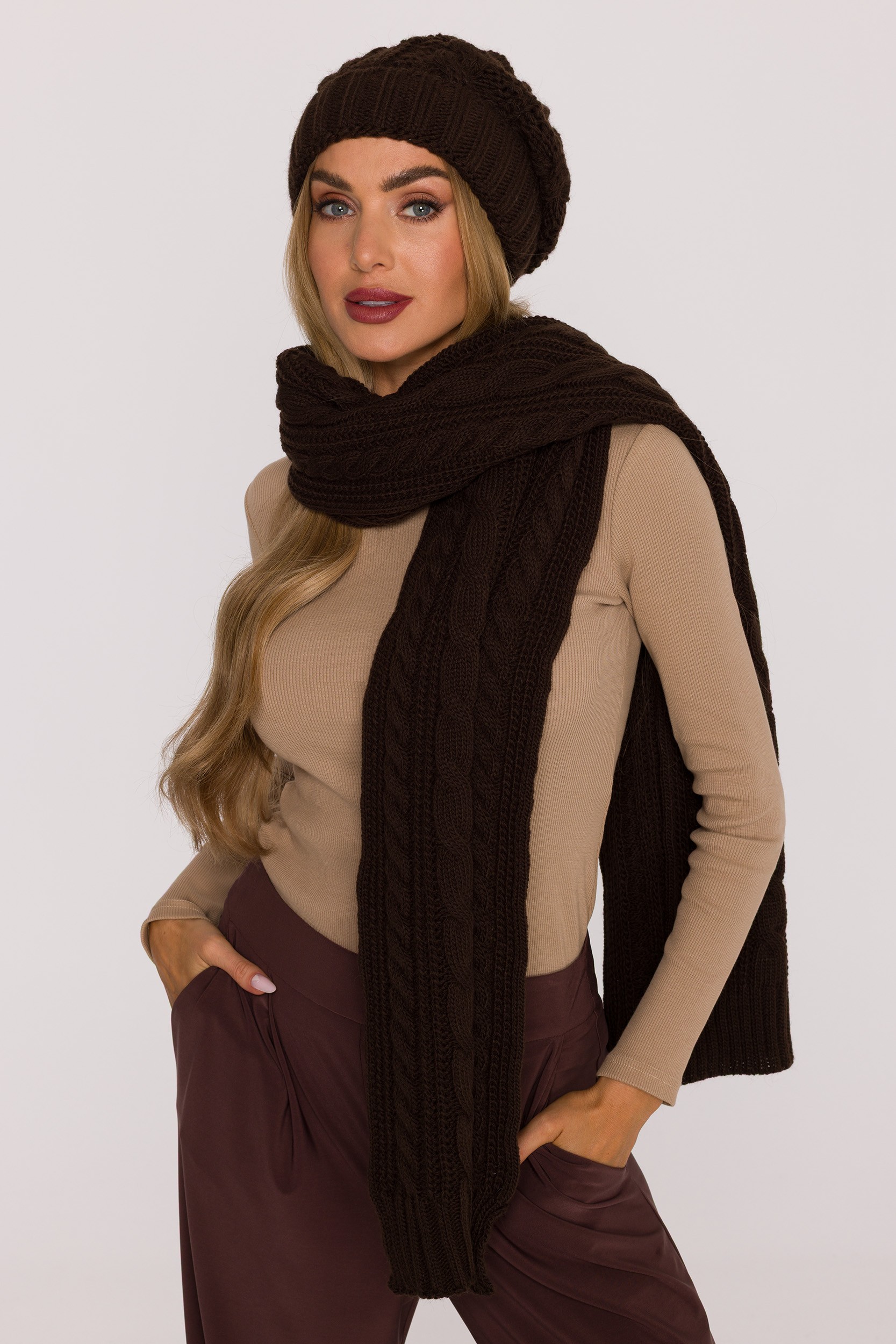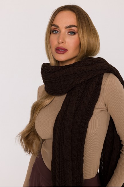 Długi szalik o grubym splocie warkoczowym - brązowy