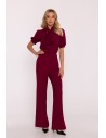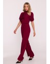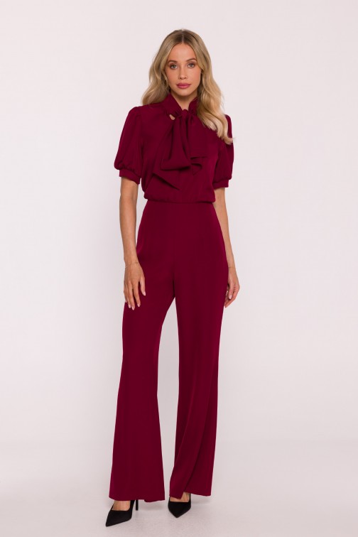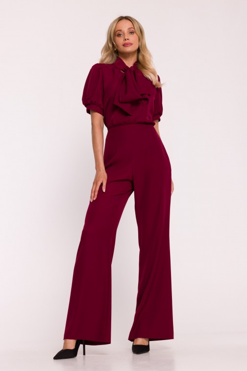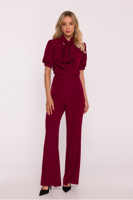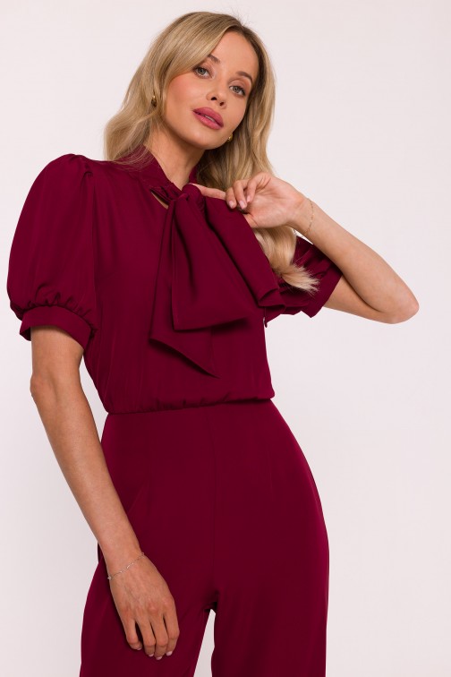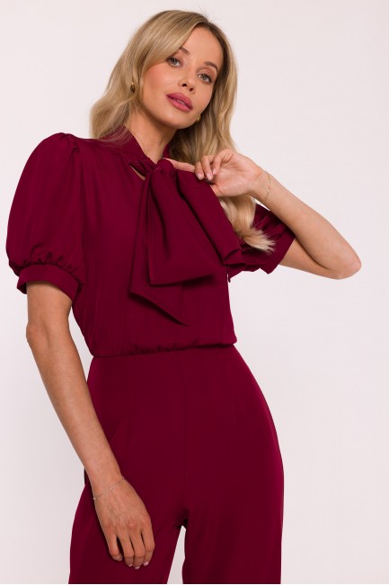 DM1496 Kombinezon z krótkim rękawem i wiązaną kokardą - bordowy