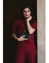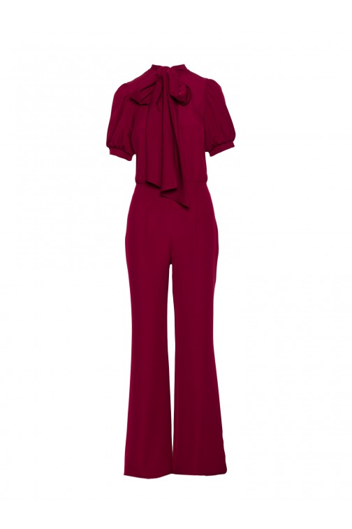 Kombinezon z krótkim rękawem i wiązaną kokardą - bordowy