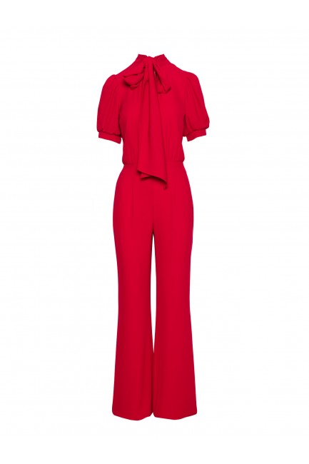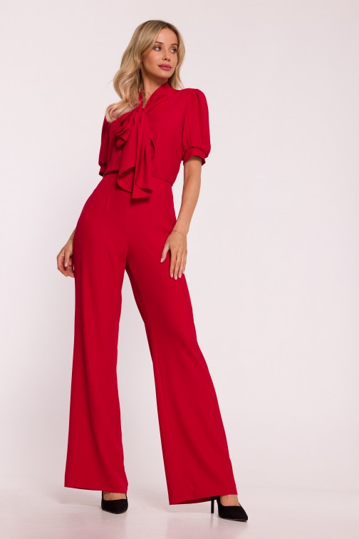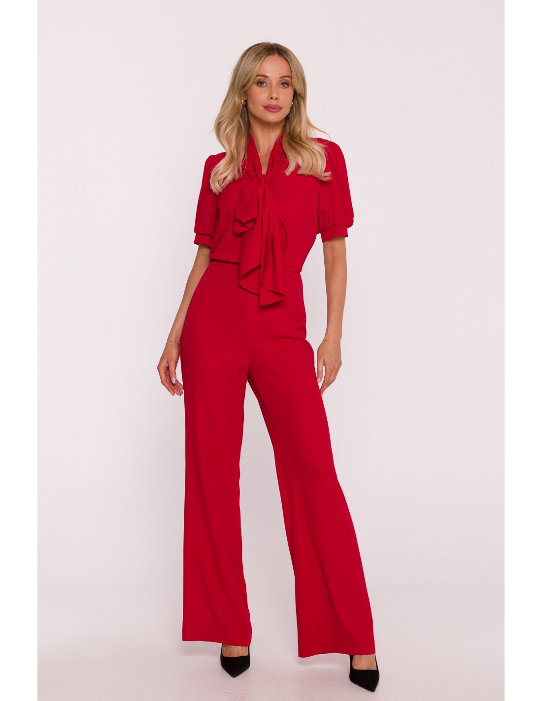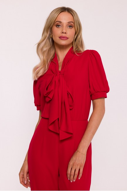 DM1496 Kombinezon z krótkim rękawem i wiązaną kokardą - czerwony