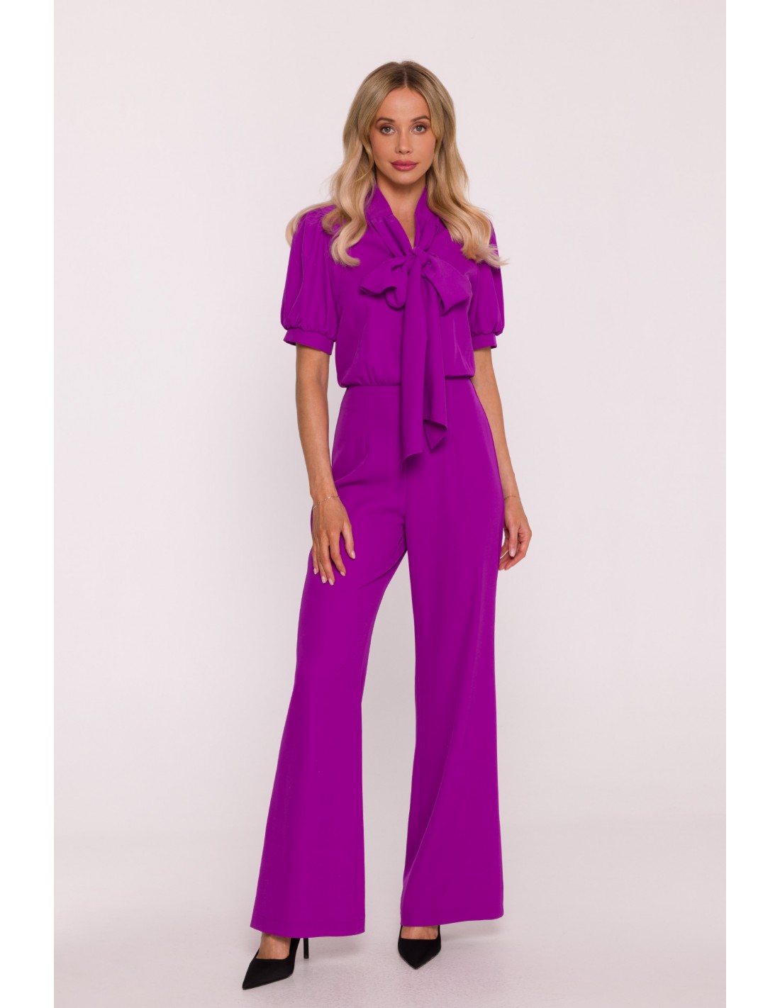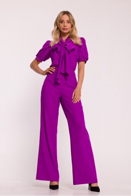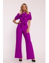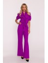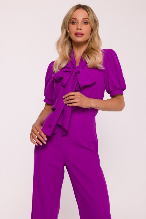 DM1496 Kombinezon z krótkim rękawem i wiązaną kokardą - lawendowy