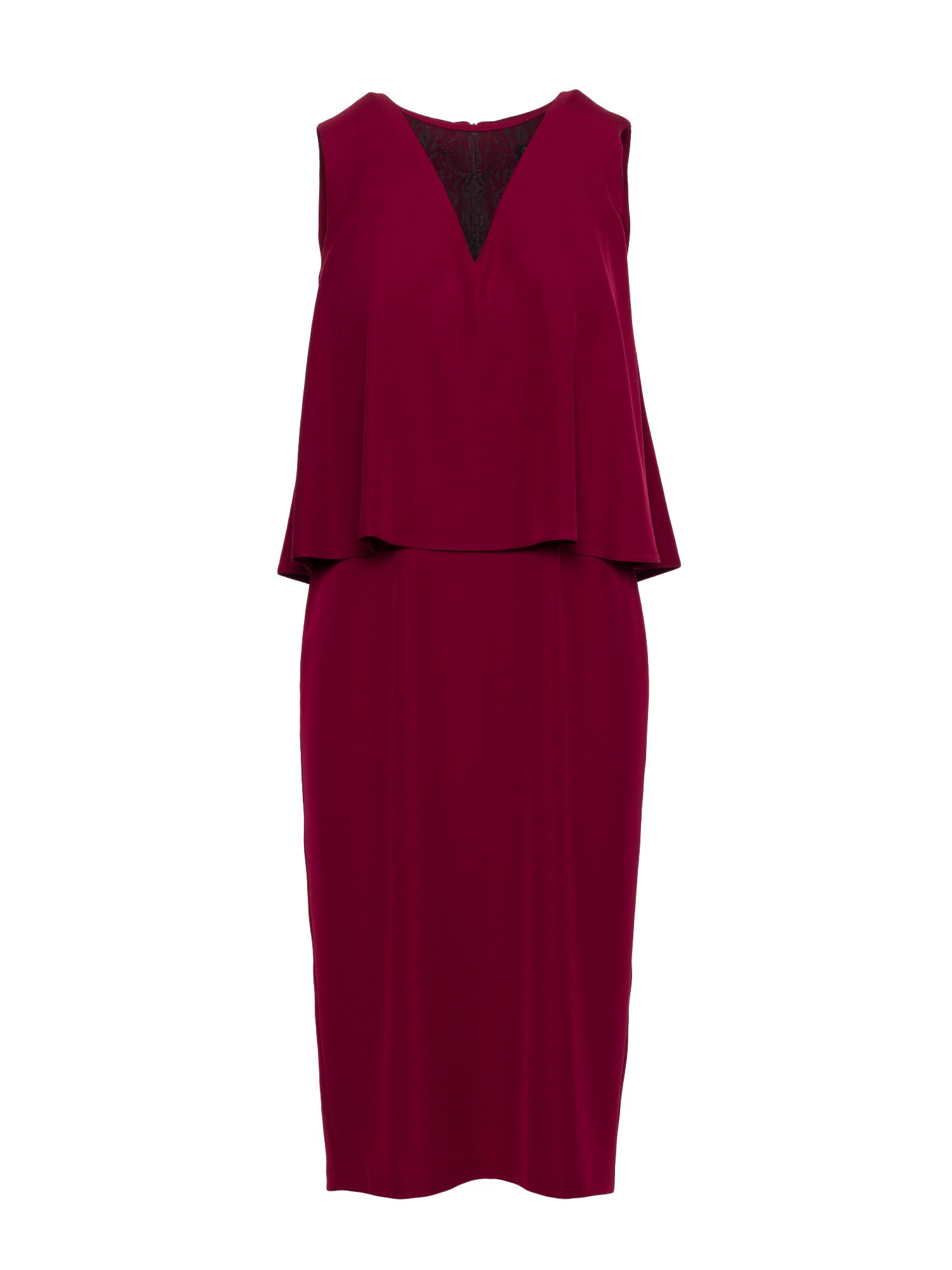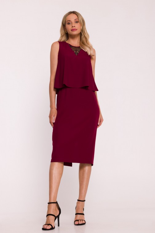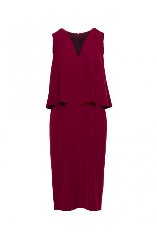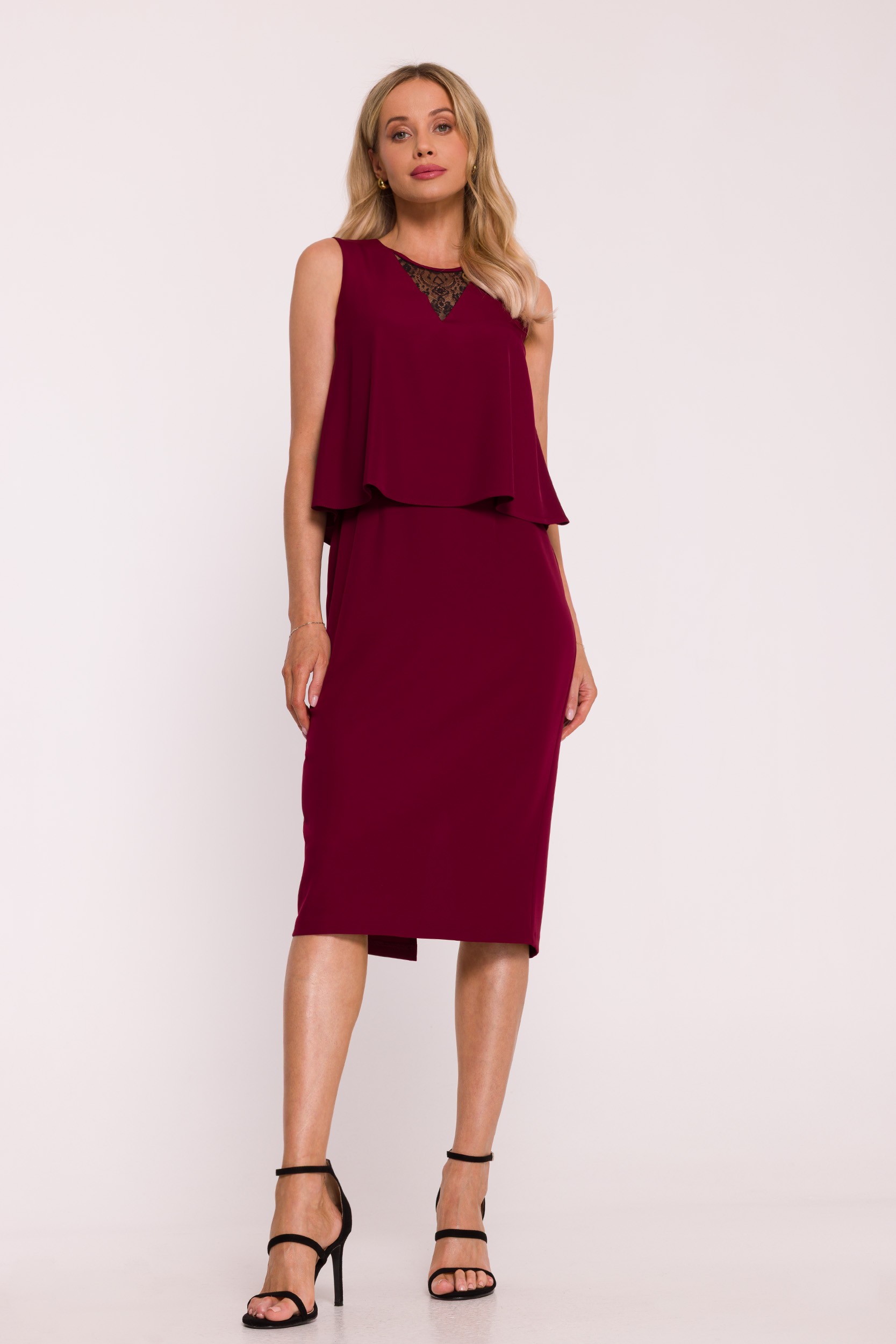 Elegancka sukienka z podwójną górą i koronkową wstawką - bordowa