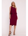 DM1497 Elegancka sukienka z podwójną górą i koronkową wstawką - bordowa