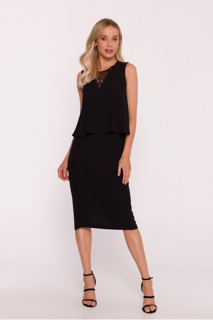 Sukienka z pelerynowym rękawem to idealny wybór na przyjęcia, bankiety czy uroczystości rodzinne. Zachwyca elegancką prostotą i unikalnym detalem, który dodaje całości lekkości i oryginalnego charakteru.