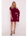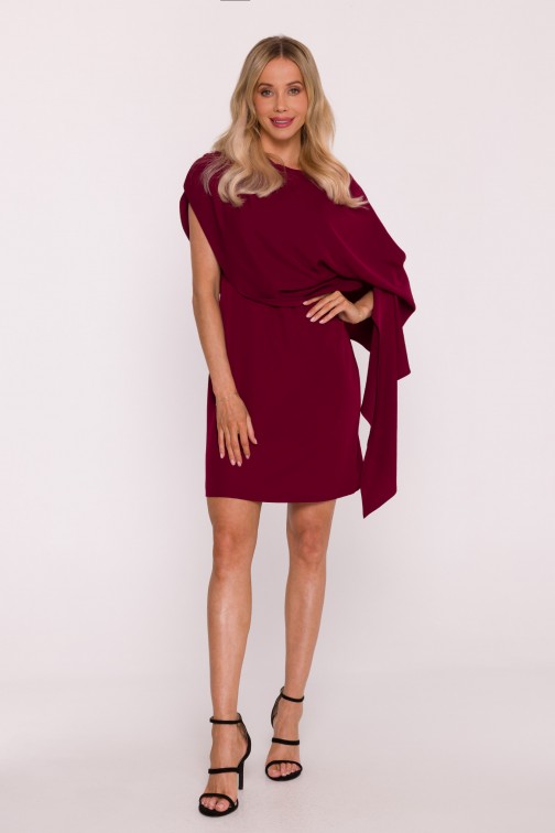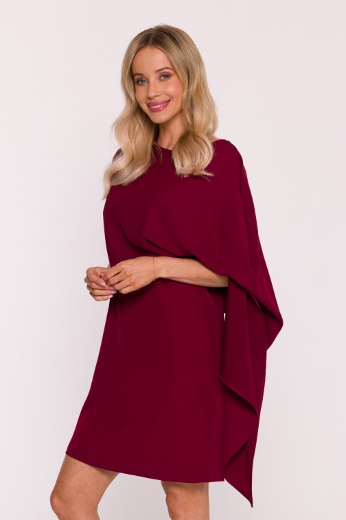 DM1498 Sukienka koktajlowa z dekoracyjną peleryną - bordowa