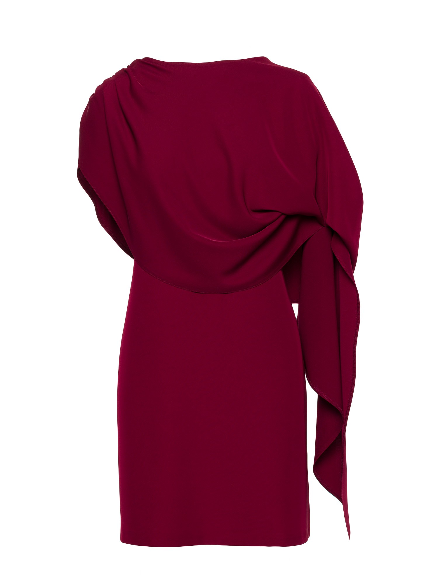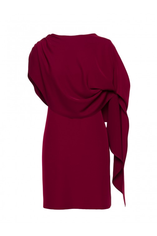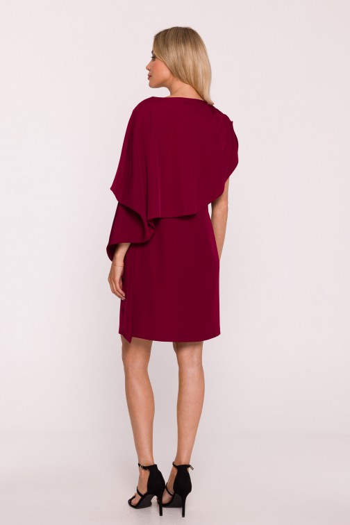 Sukienka koktajlowa z dekoracyjną peleryną - bordowa