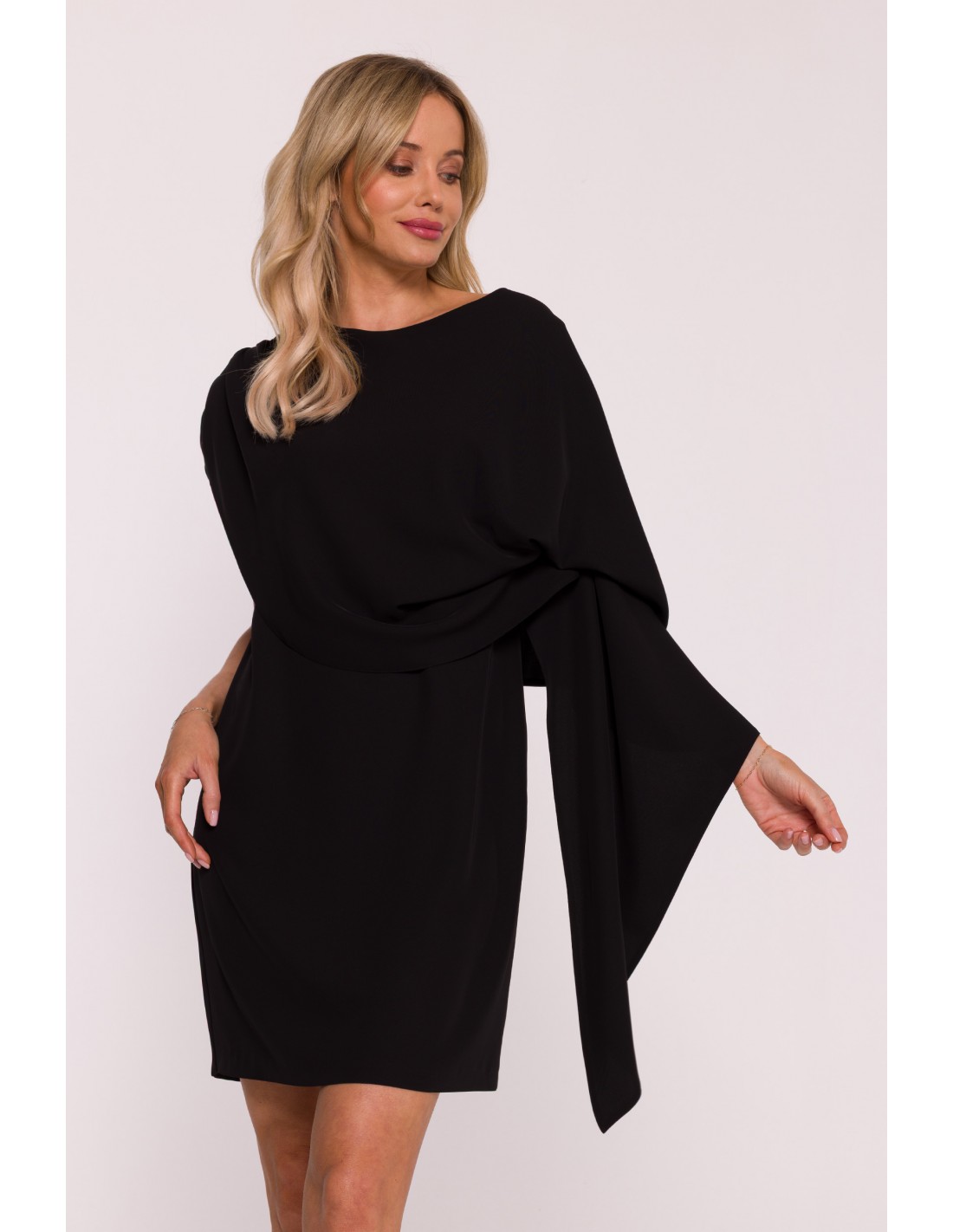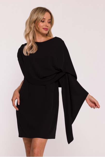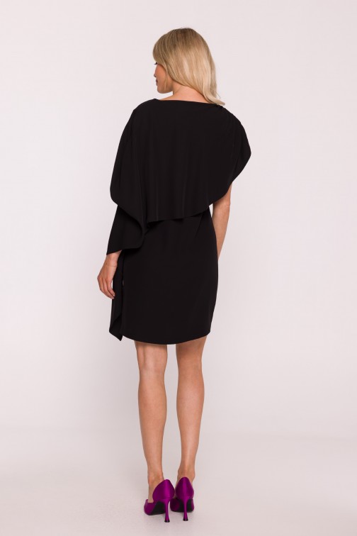 DM1498 Sukienka koktajlowa z dekoracyjną peleryną - czarna