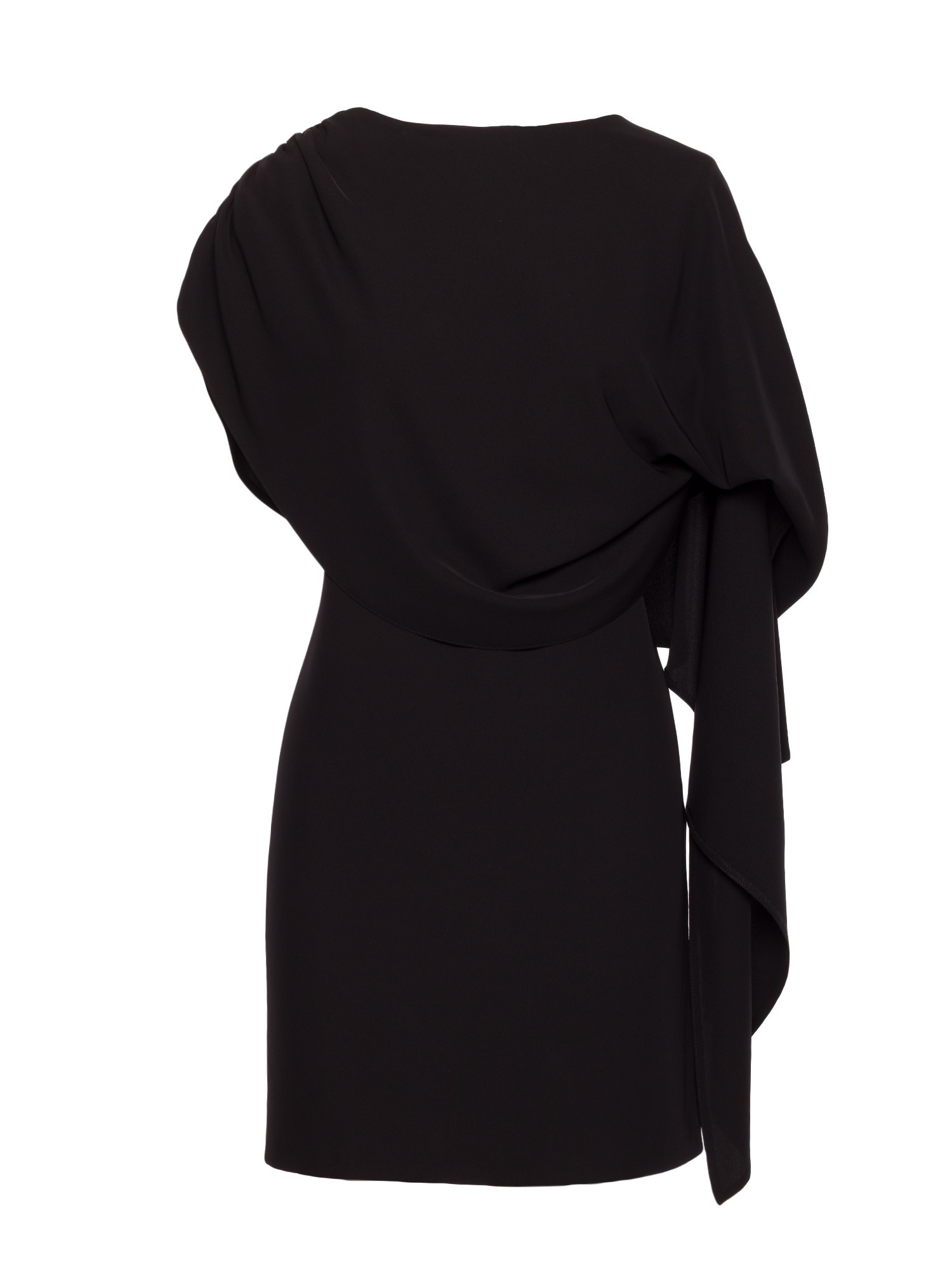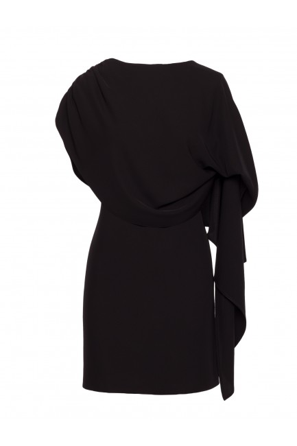 Sukienka koktajlowa z dekoracyjną peleryną - czarna