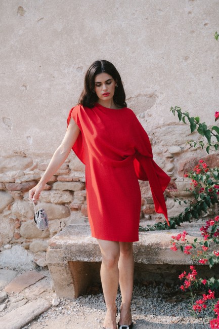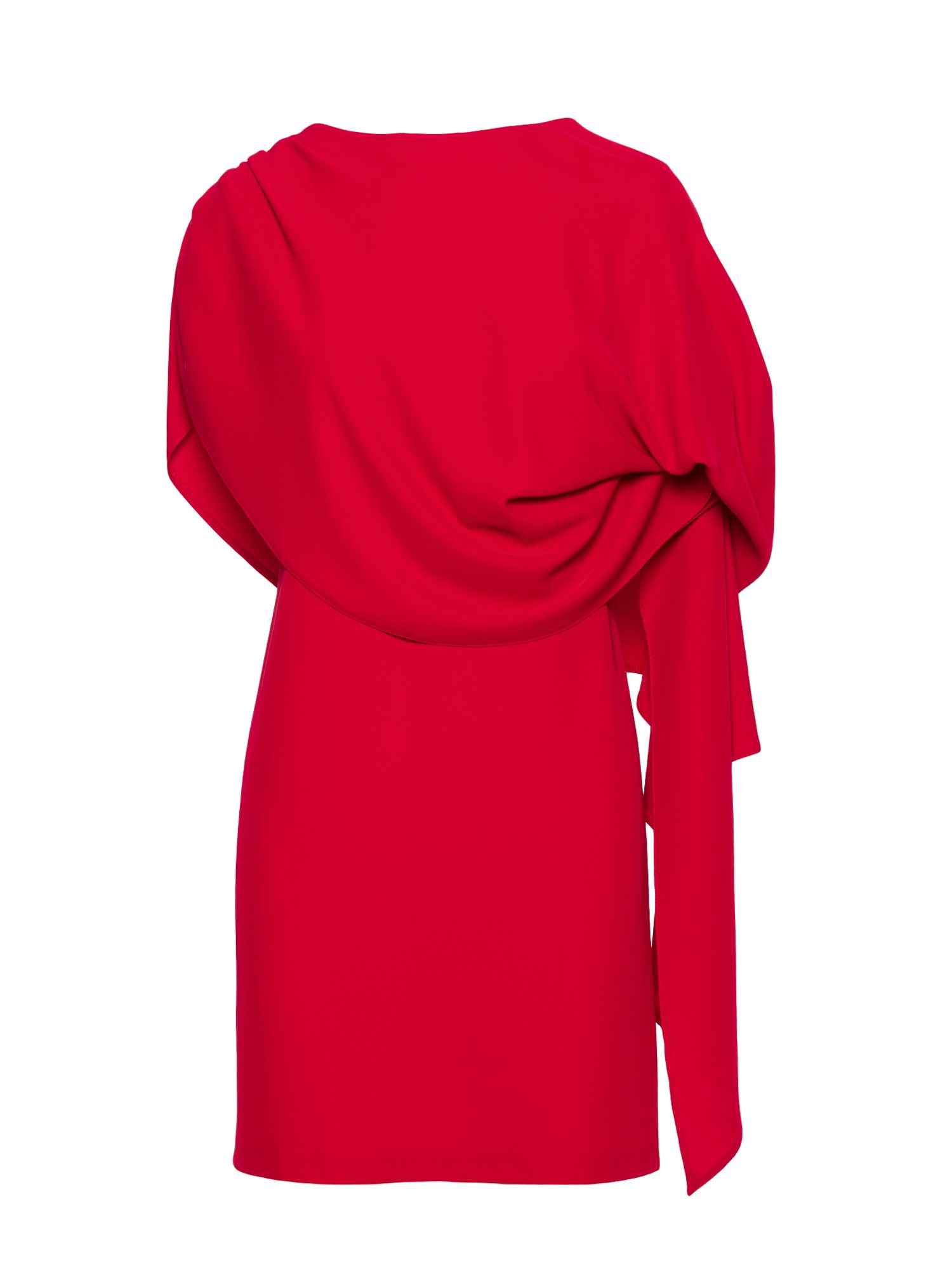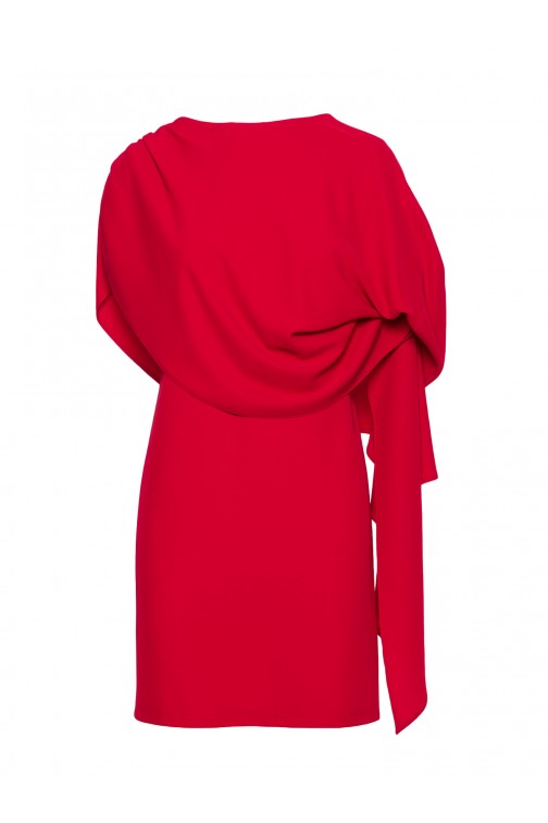 Sukienka koktajlowa z dekoracyjną peleryną - czerwona