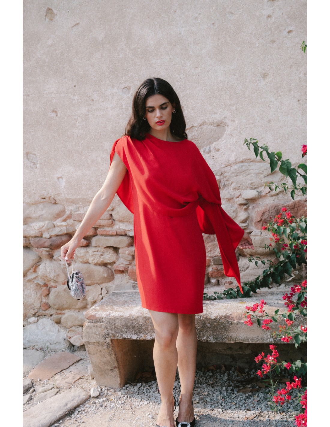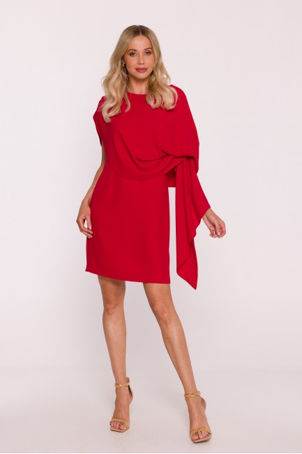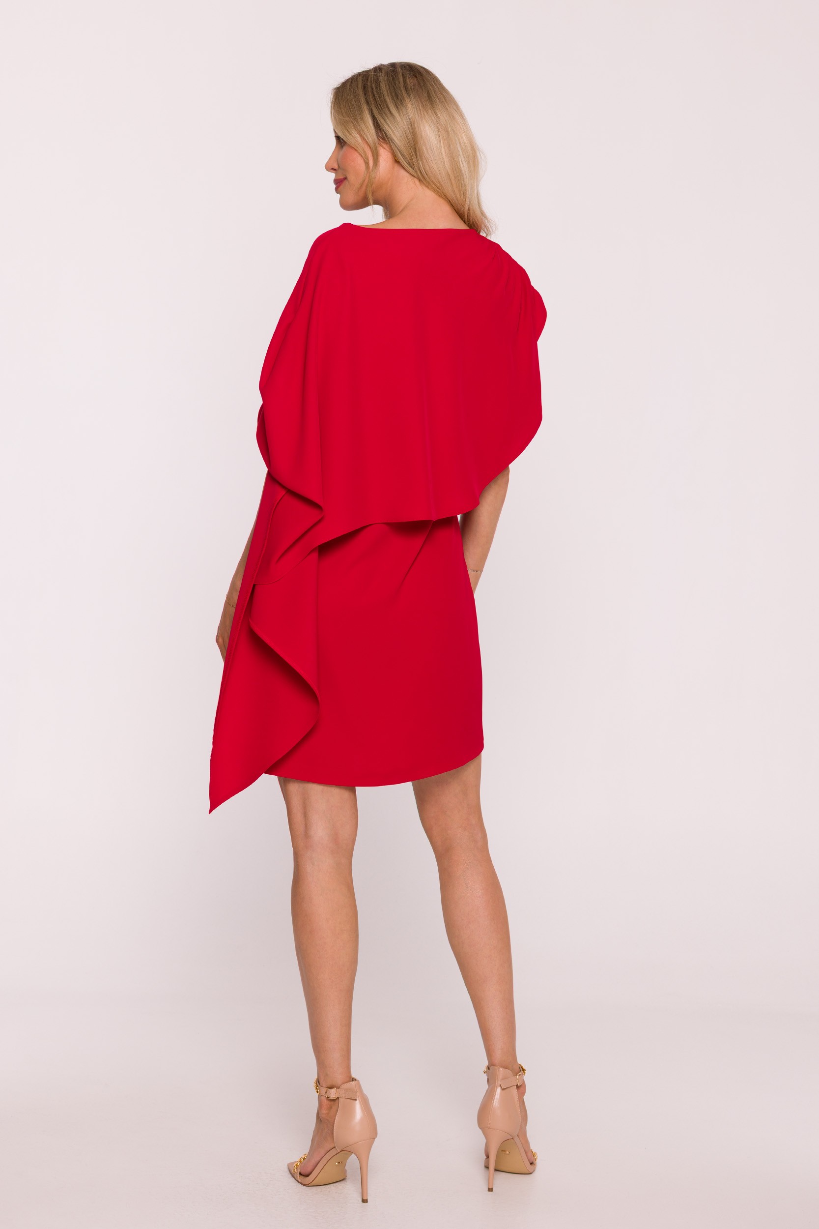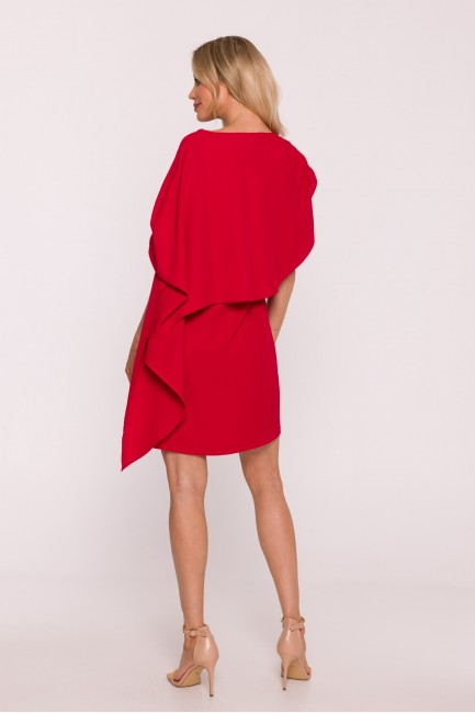 DM1498 Sukienka koktajlowa z dekoracyjną peleryną - czerwona
