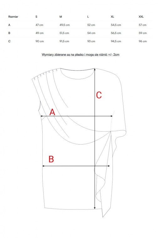 • Rękawy: asymetryczna, luźno opadająca peleryna tworząca efektowne ramię