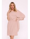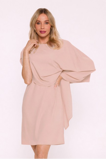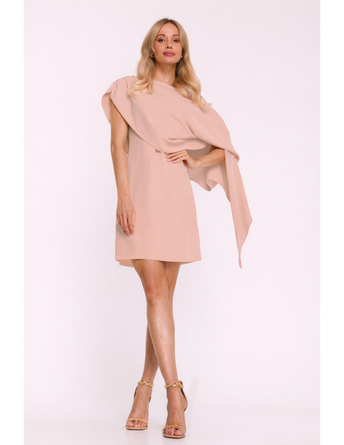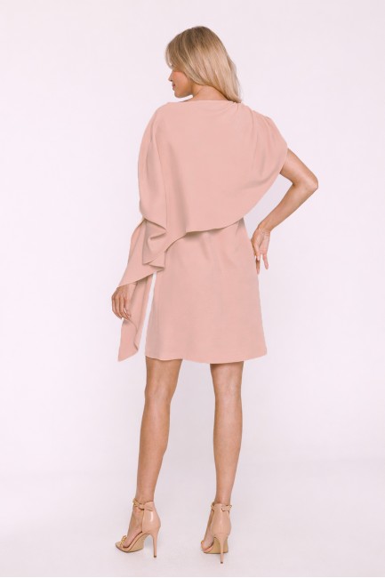 DM1498 Sukienka koktajlowa z dekoracyjną peleryną - sorbetowa