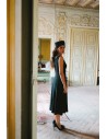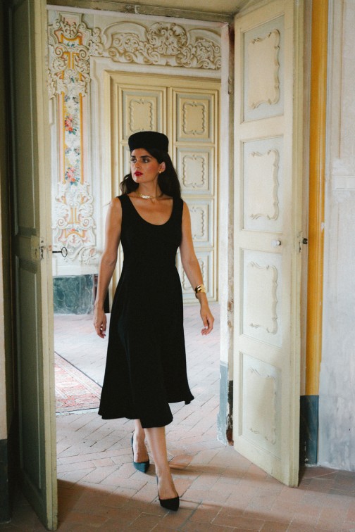 Klasyczna sukienka rozkloszowana z gładkiej tkaniny o lekkim połysku, łącząca kobiecość i elegancję w ponadczasowej formie. Dopasowana góra pięknie podkreśla sylwetkę, a rozkloszowany dół nadaje lekkości i swobody. Subtelne cięcie w talii optycznie wysmukla figurę, gwarantując jednocześnie komfort i pełną swobodę ruchów. Idealna na uroczystości rodzinne, romantyczne kolacje czy przyjęcia.