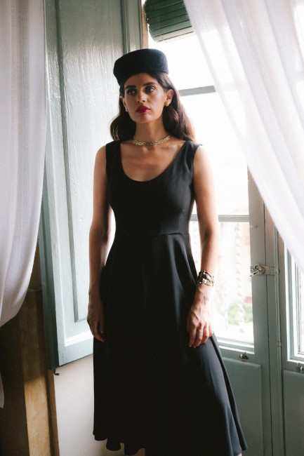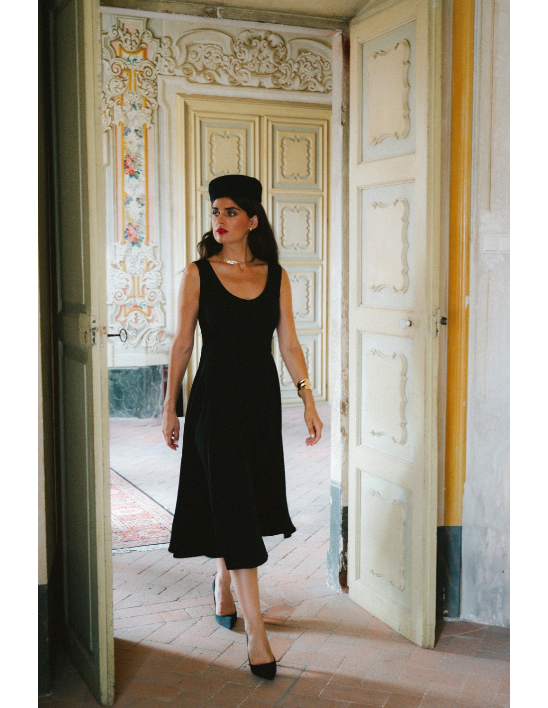 Sukienka rozkloszowana midi bez rękawów - czarna