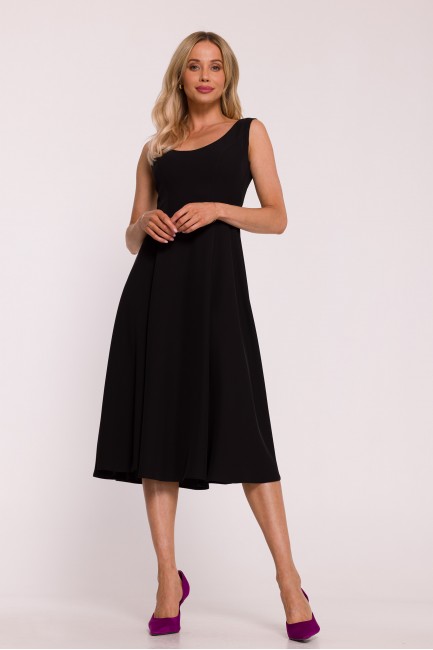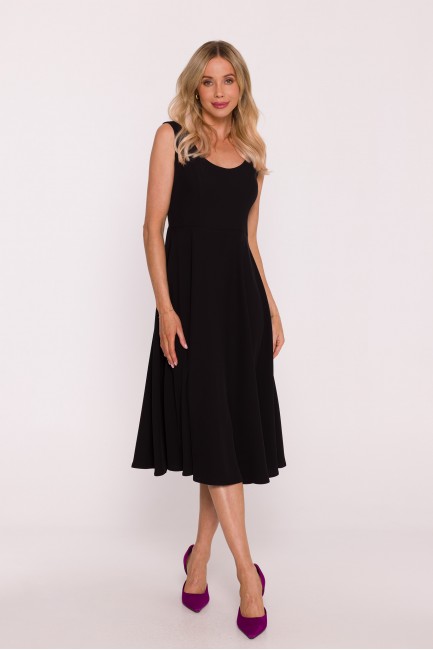 DM1499 Sukienka rozkloszowana midi bez rękawów - czarna