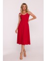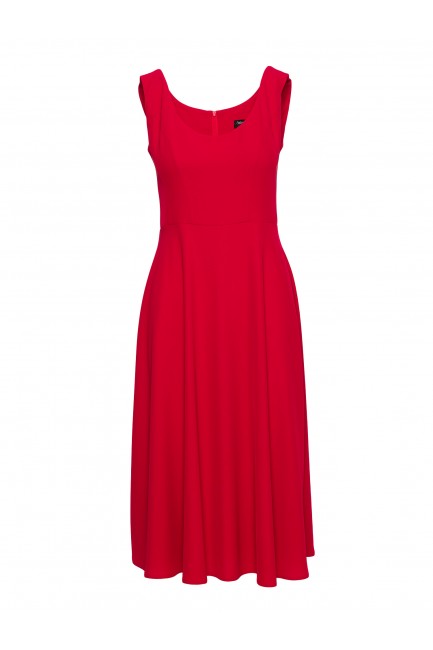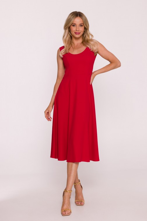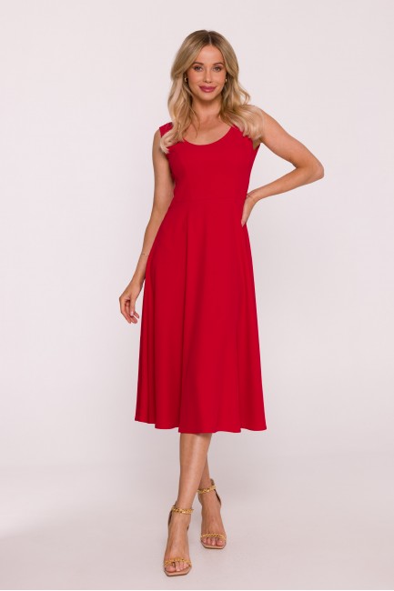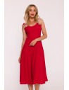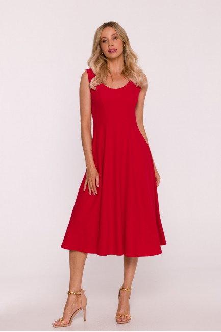 DM1499 Sukienka rozkloszowana midi bez rękawów - czerwona