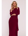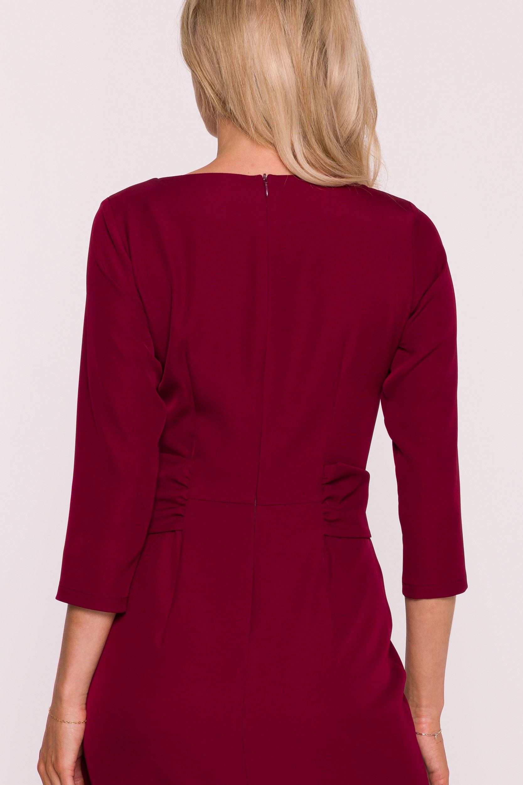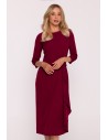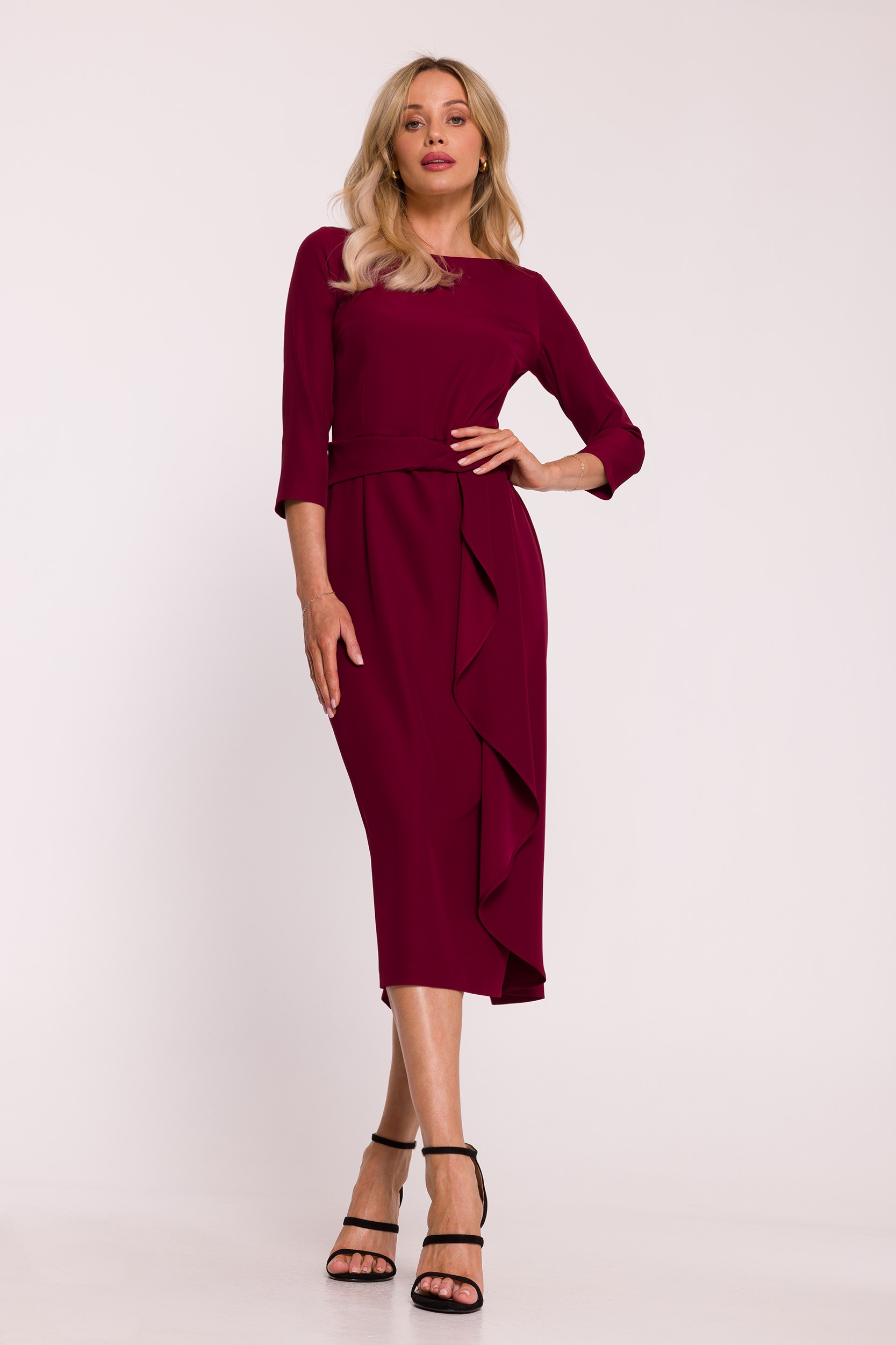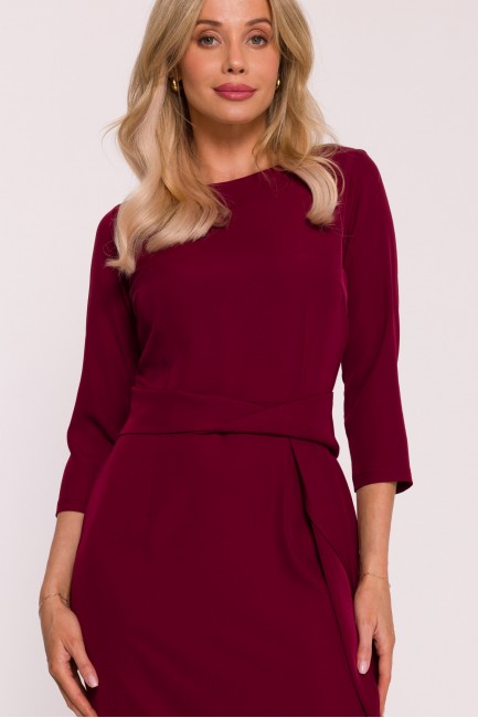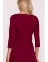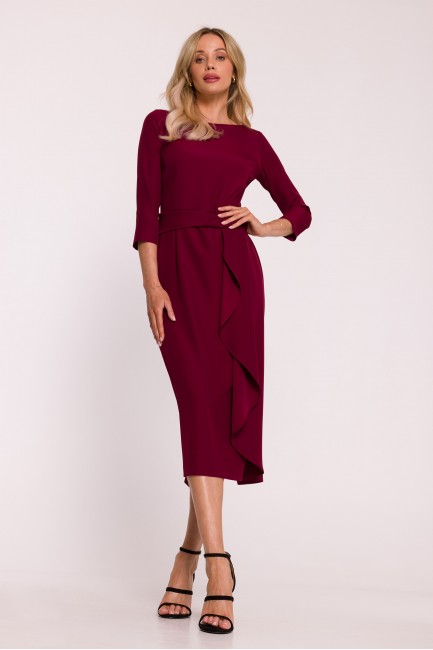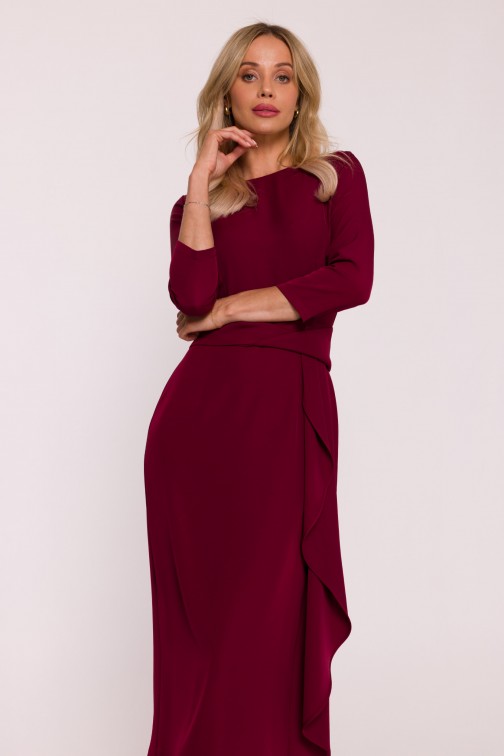 DM1500 Elegancka sukienka z ozdobną falbaną - bordowa