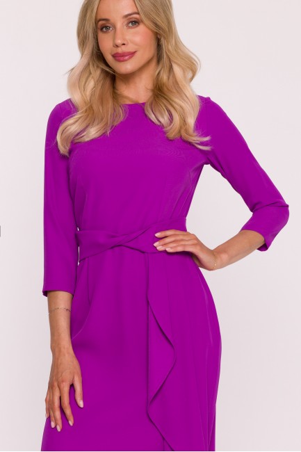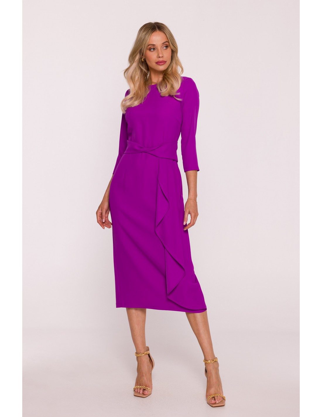 DM1500 Elegancka sukienka z ozdobną falbaną - lawendowa