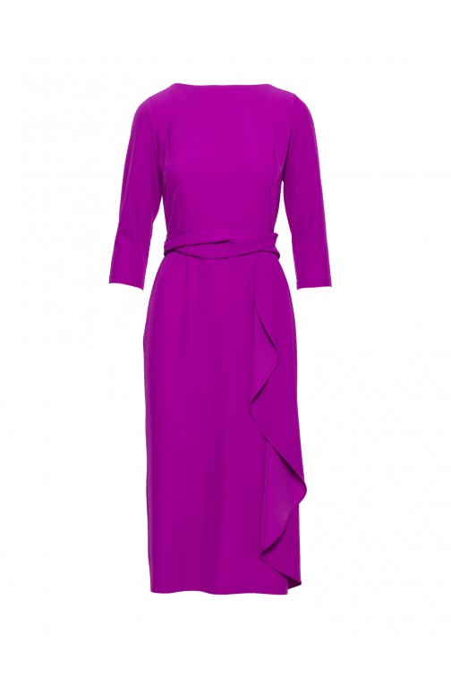 Elegancka sukienka z ozdobną falbaną - lawendowa