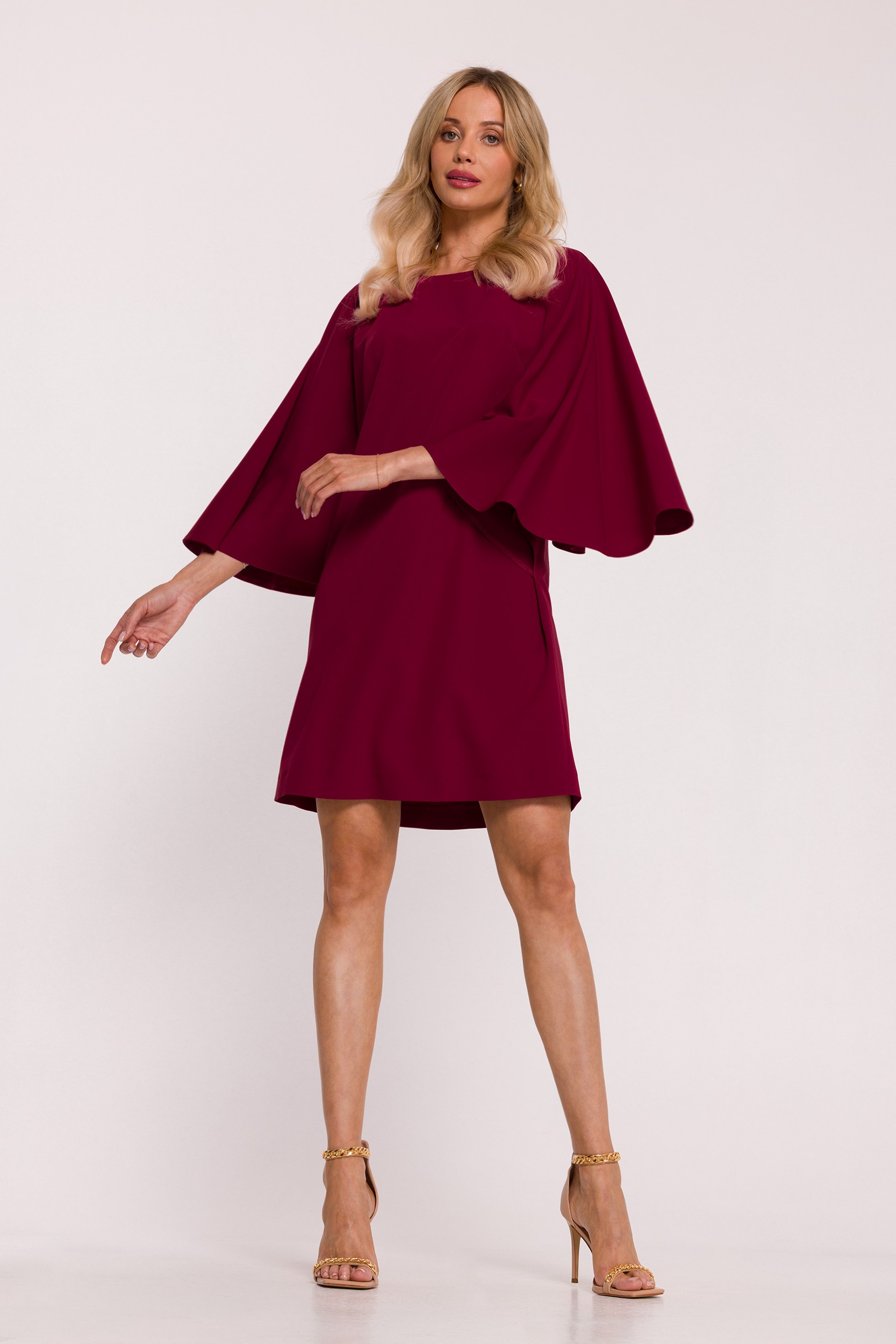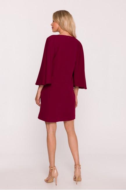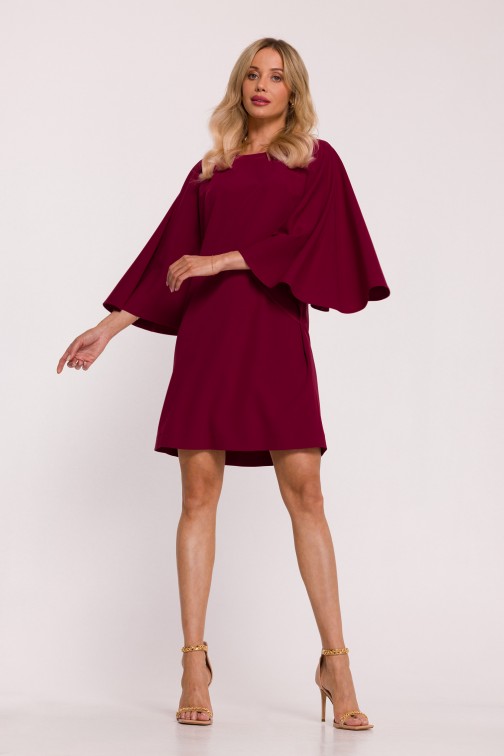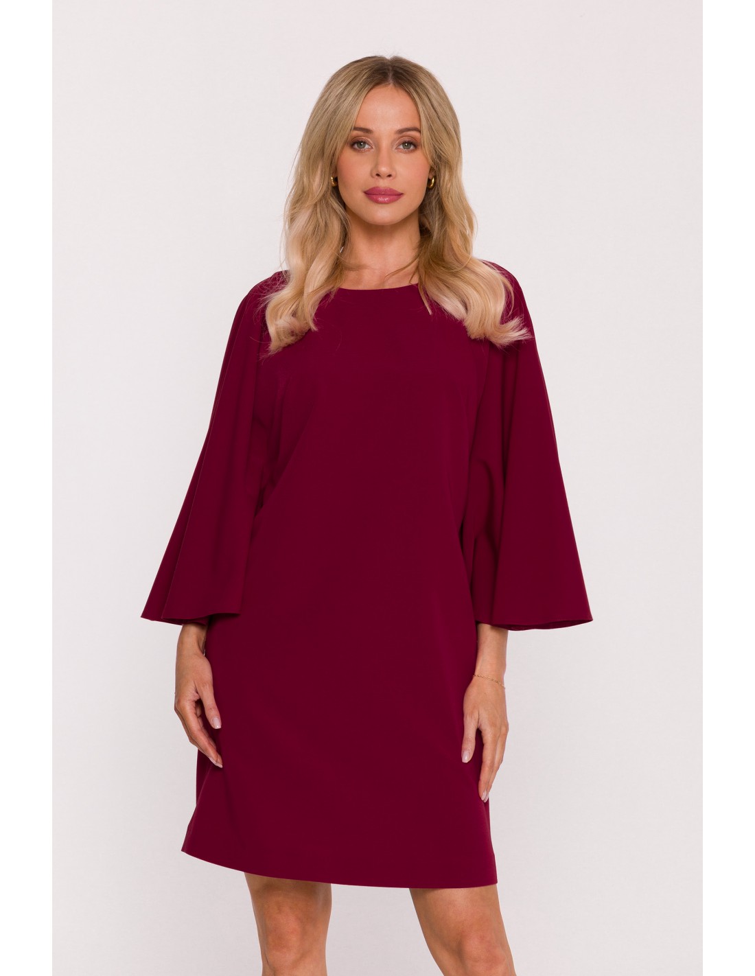 DM1501 Sukienka z rękawami typu nietoperz - bordowa