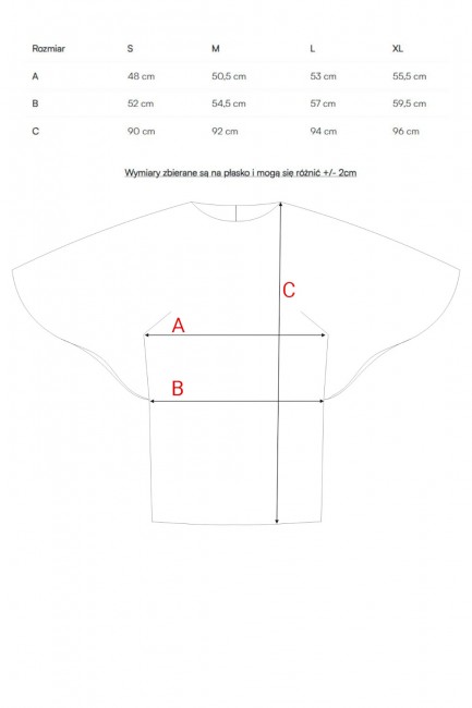 • Rękawy: szerokie, rozkloszowane typu nietoperz, długość 3/4