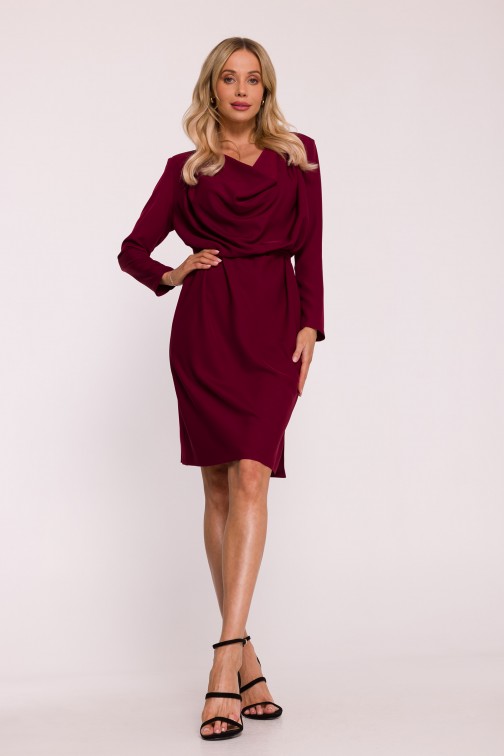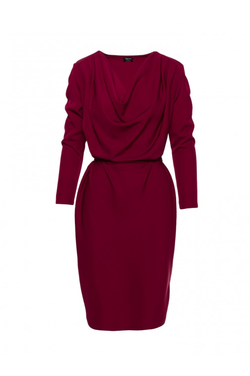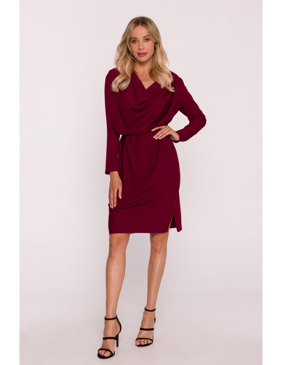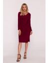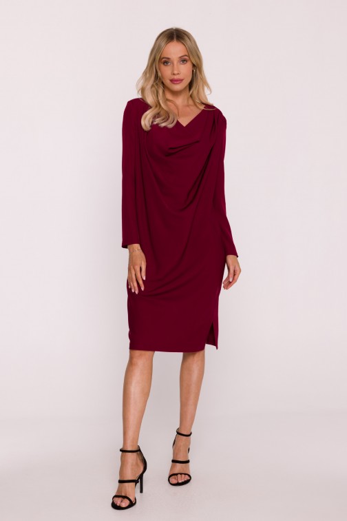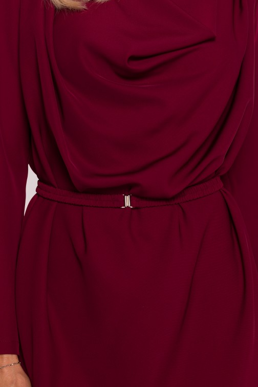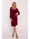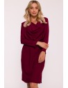 DM1503 Sukienka midi z dekoltem typu woda - bordowa