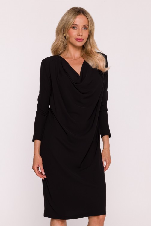 DM1503 Sukienka midi z dekoltem typu woda - czarna